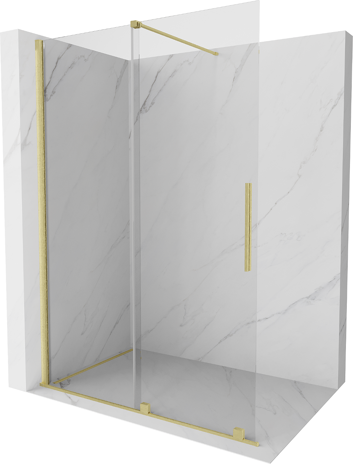 Mexen Velar parete doccia scorrevole Walk-in 140 x 200 cm, trasparente 8 mm, oro spazzolato - 871-140-000-03-55