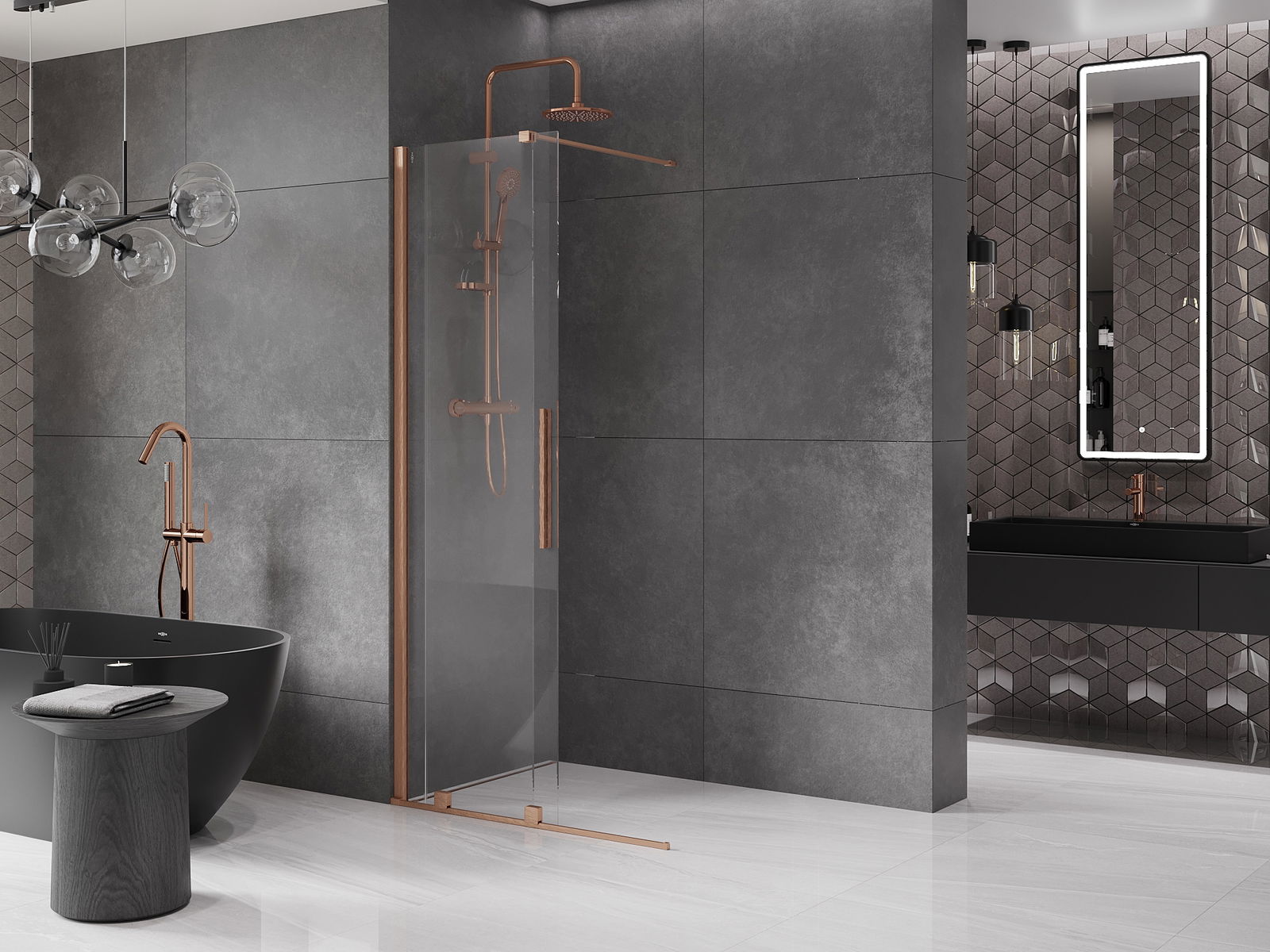 Mexen Velar parete doccia scorrevole Walk-in 70 x 200 cm, trasparente 8 mm, rame spazzolato - 871-070-000-03-65