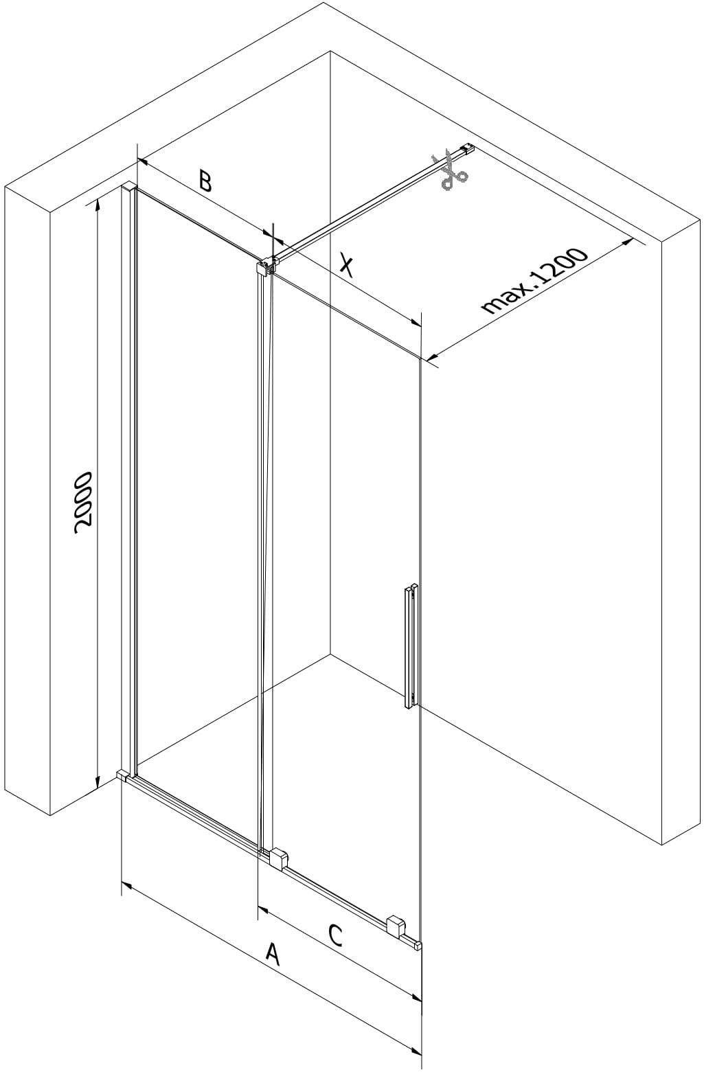 Mexen Velar pannello doccia scorrevole Walk-in 120 x 200 cm, trasparente 8 mm, nero - 871-120-000-03-70