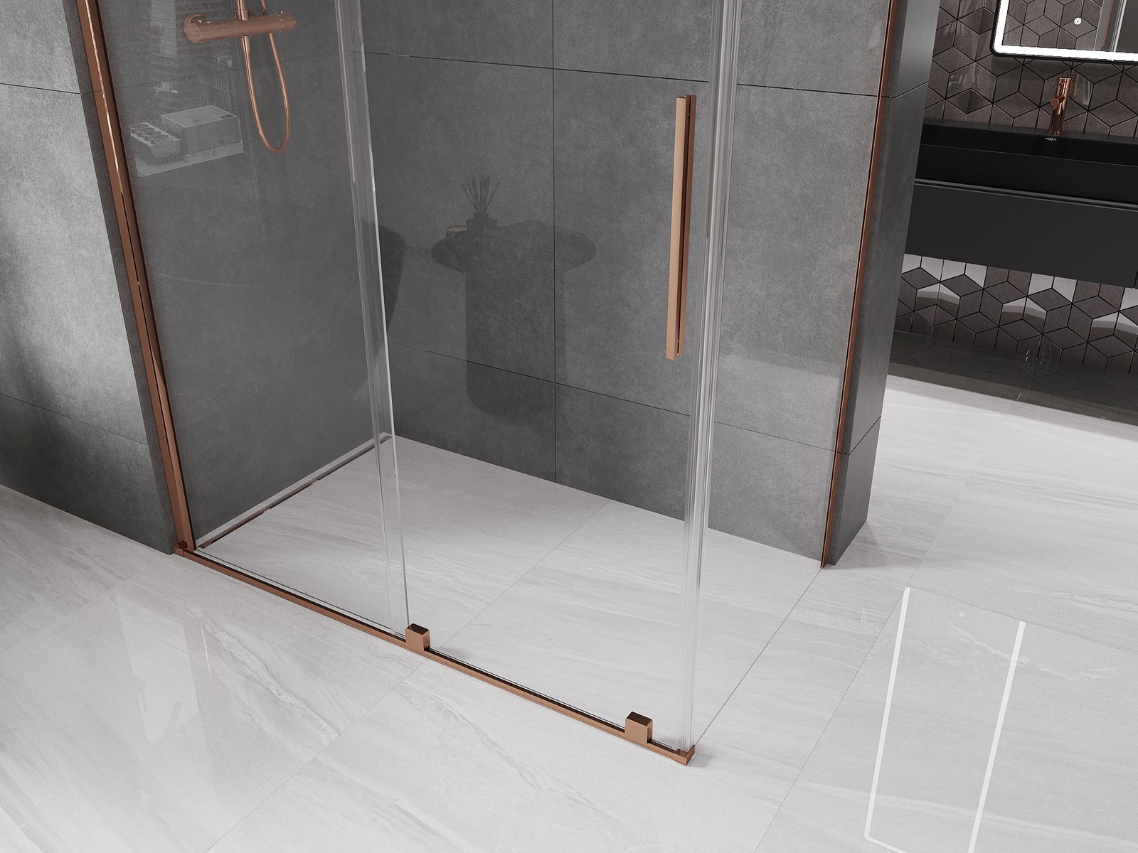 Mexen Velar cabina doccia scorrevole 160 x 85 cm, trasparente, oro rosa - 871-160-085-01-60