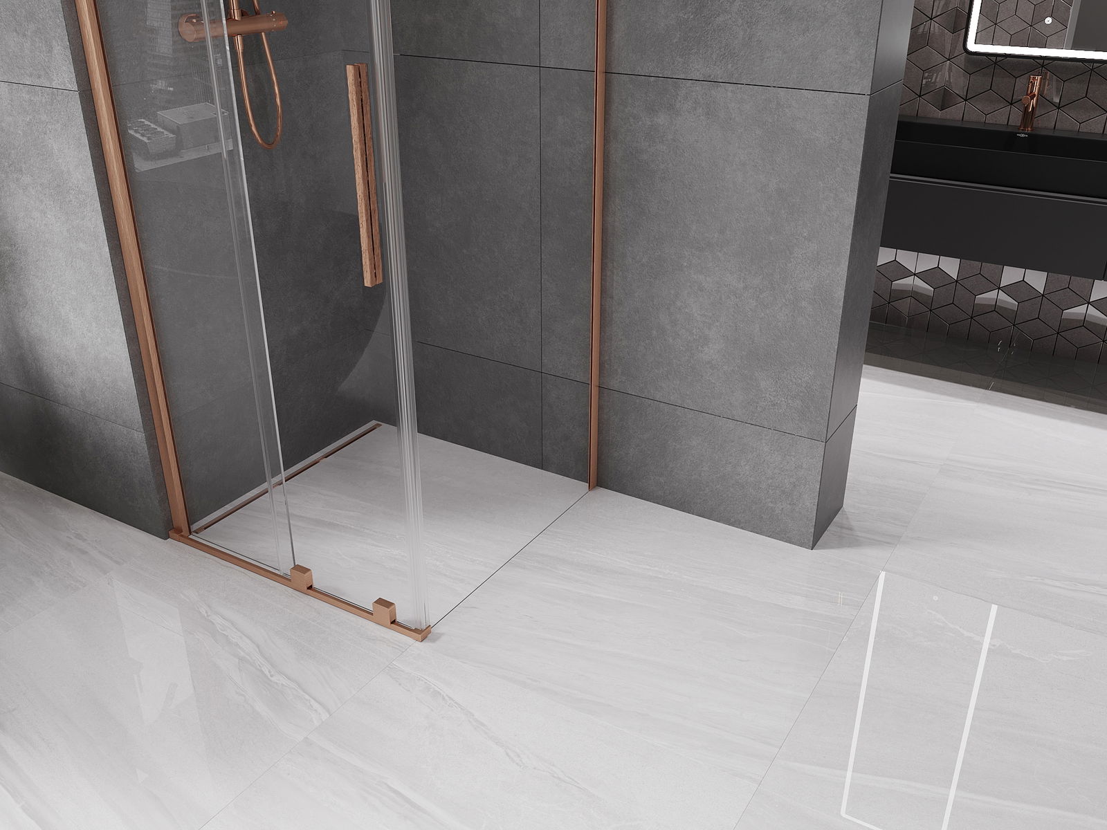 Il prodotto, a seconda delle esigenze, può essere installato sia sul piatto doccia che direttamente sul pavimento. Il metodo di installazione universale consente di adattare il prodotto a diversi tipi di bagni e configurazioni di spazio.