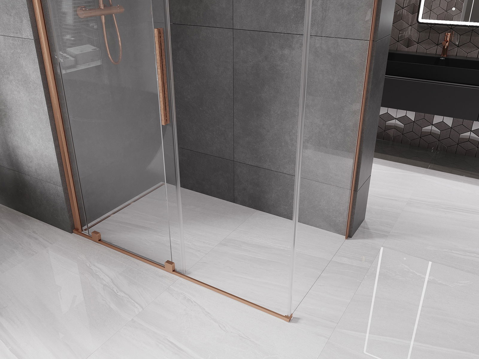 Mexen Velar cabina doccia scorrevole 140 x 75 cm, trasparente, rame spazzolato - 871-140-075-01-65