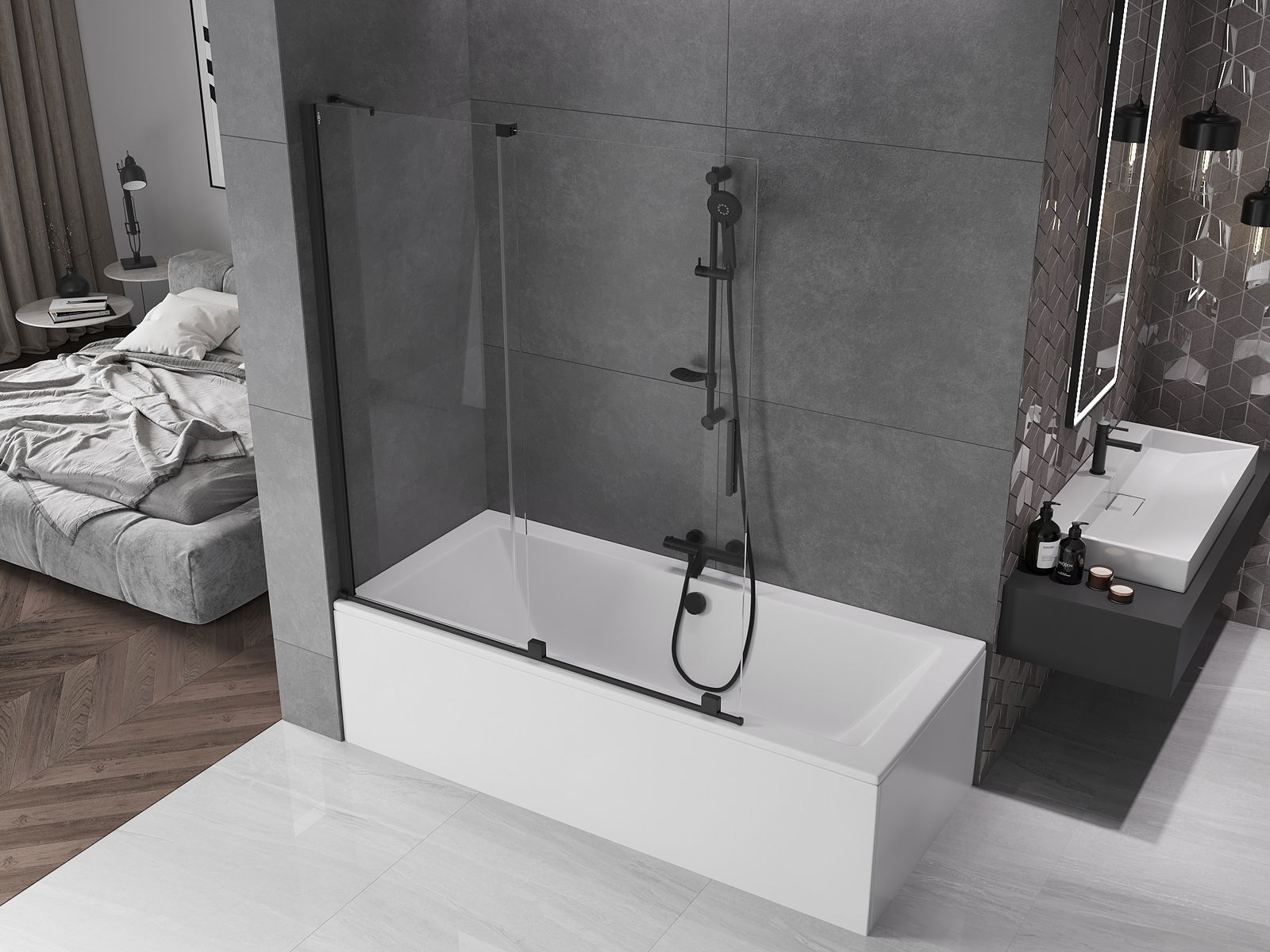 Mexen Velar paratia per vasca da bagno a 2 ante scorrevoli 140 x 150 cm, trasparente, nero - 896-140-000-01-70
