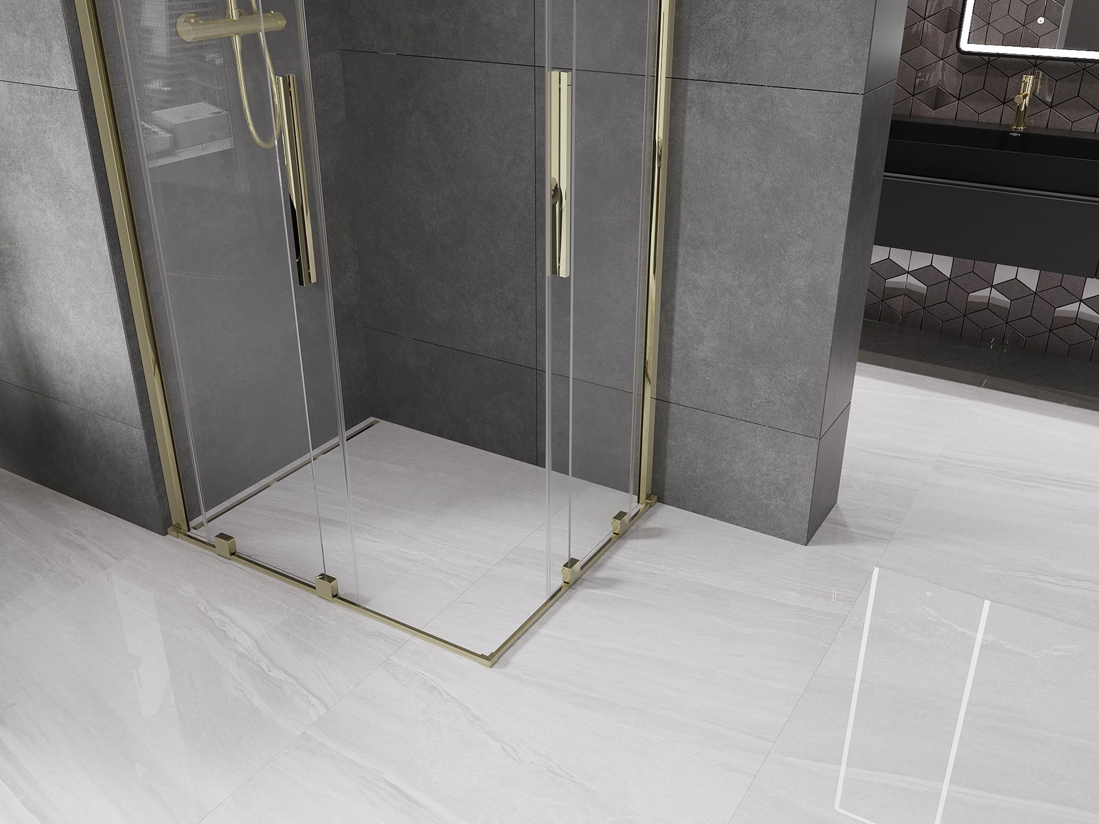 Mexen Velar Duo cabina doccia scorrevole 90 x 80 cm, trasparente, oro - 871-090-080-02-50