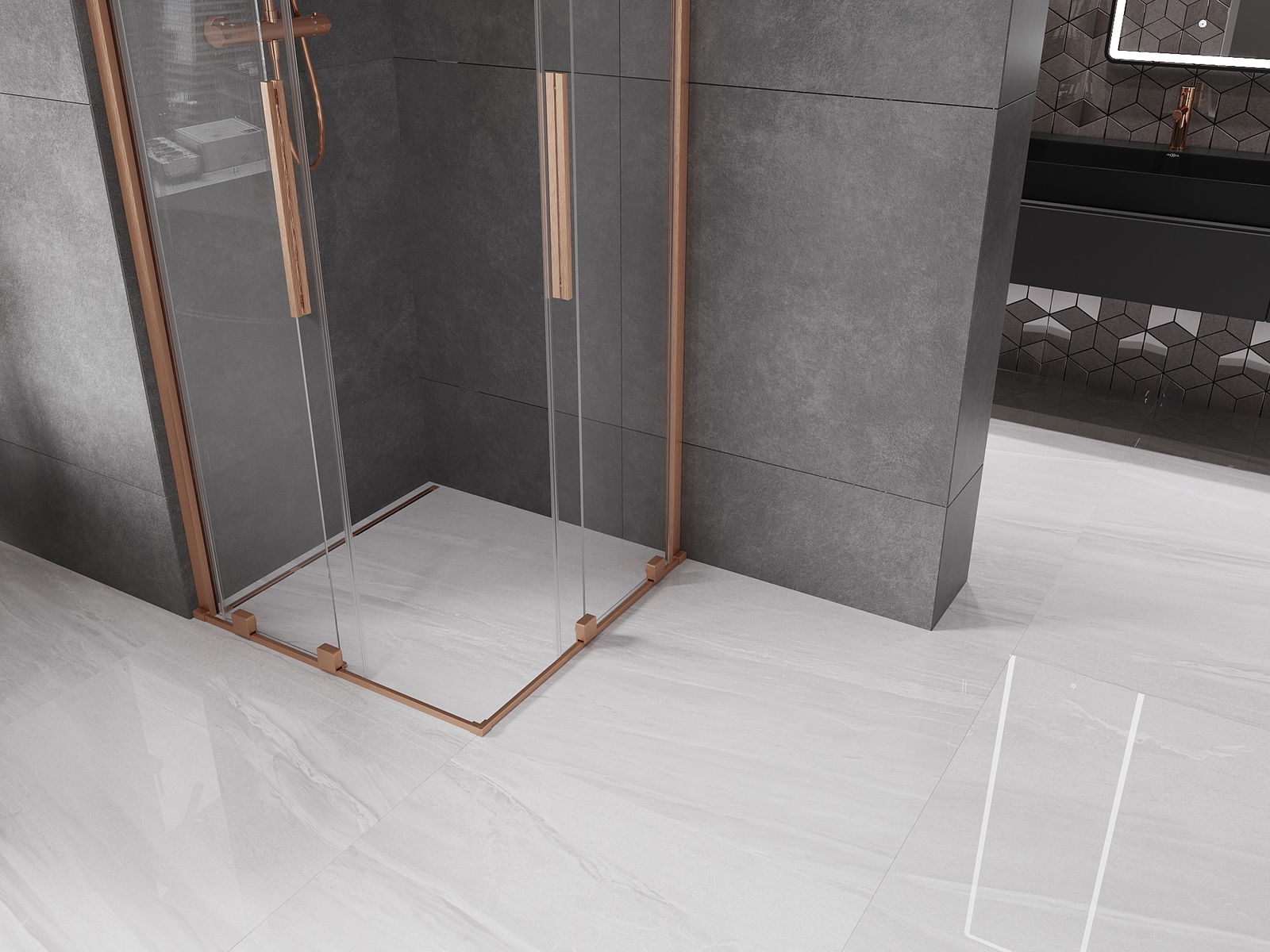 Mexen Velar Duo cabina doccia scorrevole 80 x 80 cm, trasparente, rame spazzolato - 871-080-080-02-65