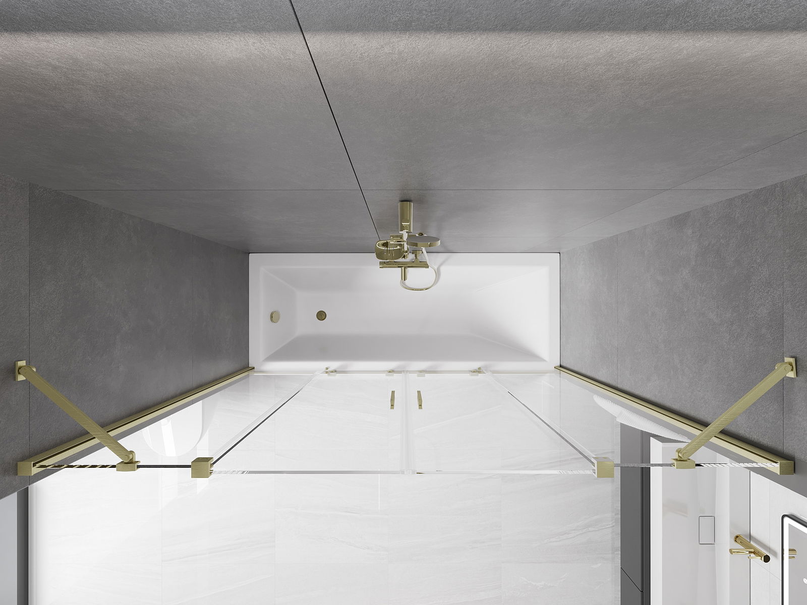 Mexen Velar Duo paravento da vasca da bagno 2 ante scorrevole 170 x 150 cm, trasparente, oro spazzolato - 896-170-000-02-55