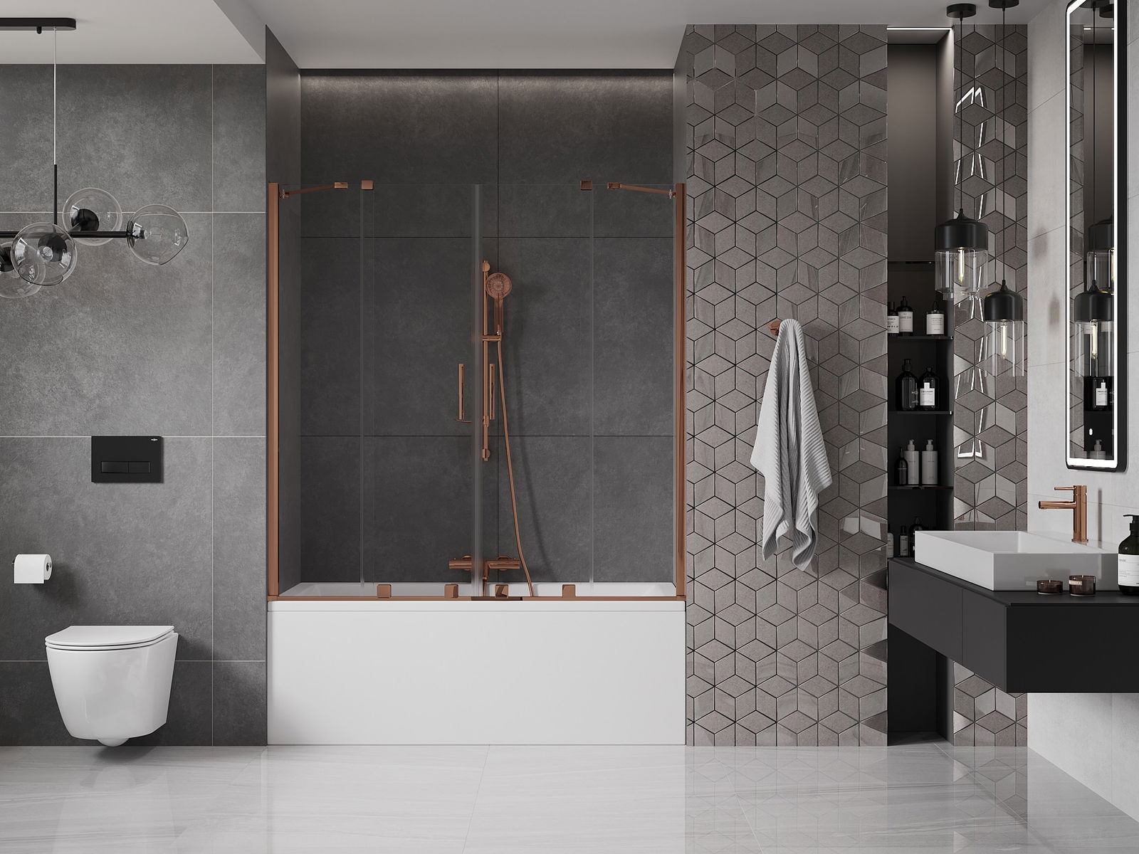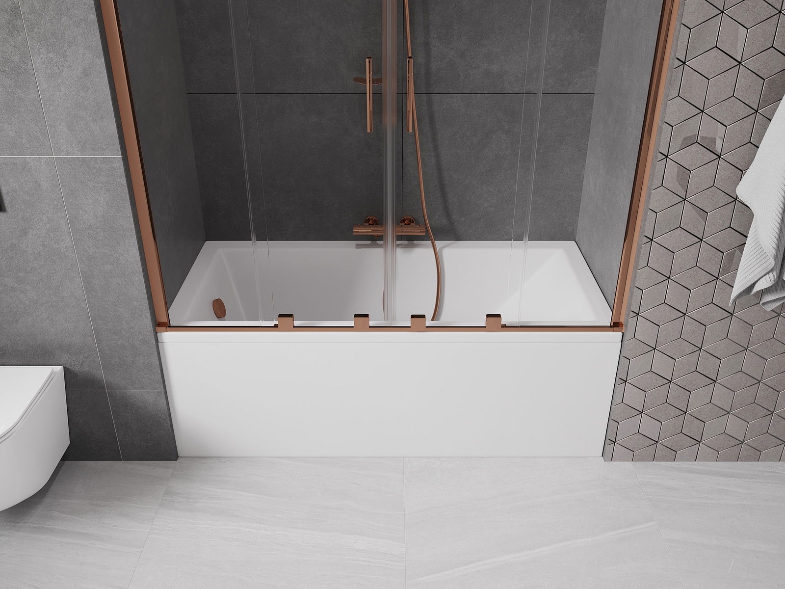 Mexen Velar Duo paratia per vasca da bagno a 2 ante scorrevoli 150 x 150 cm, trasparente, oro rosa - 896-150-000-02-60