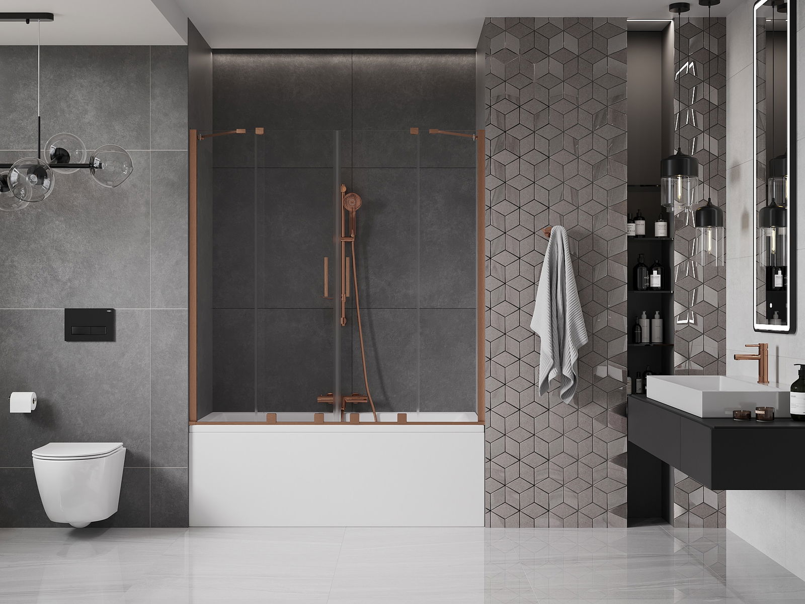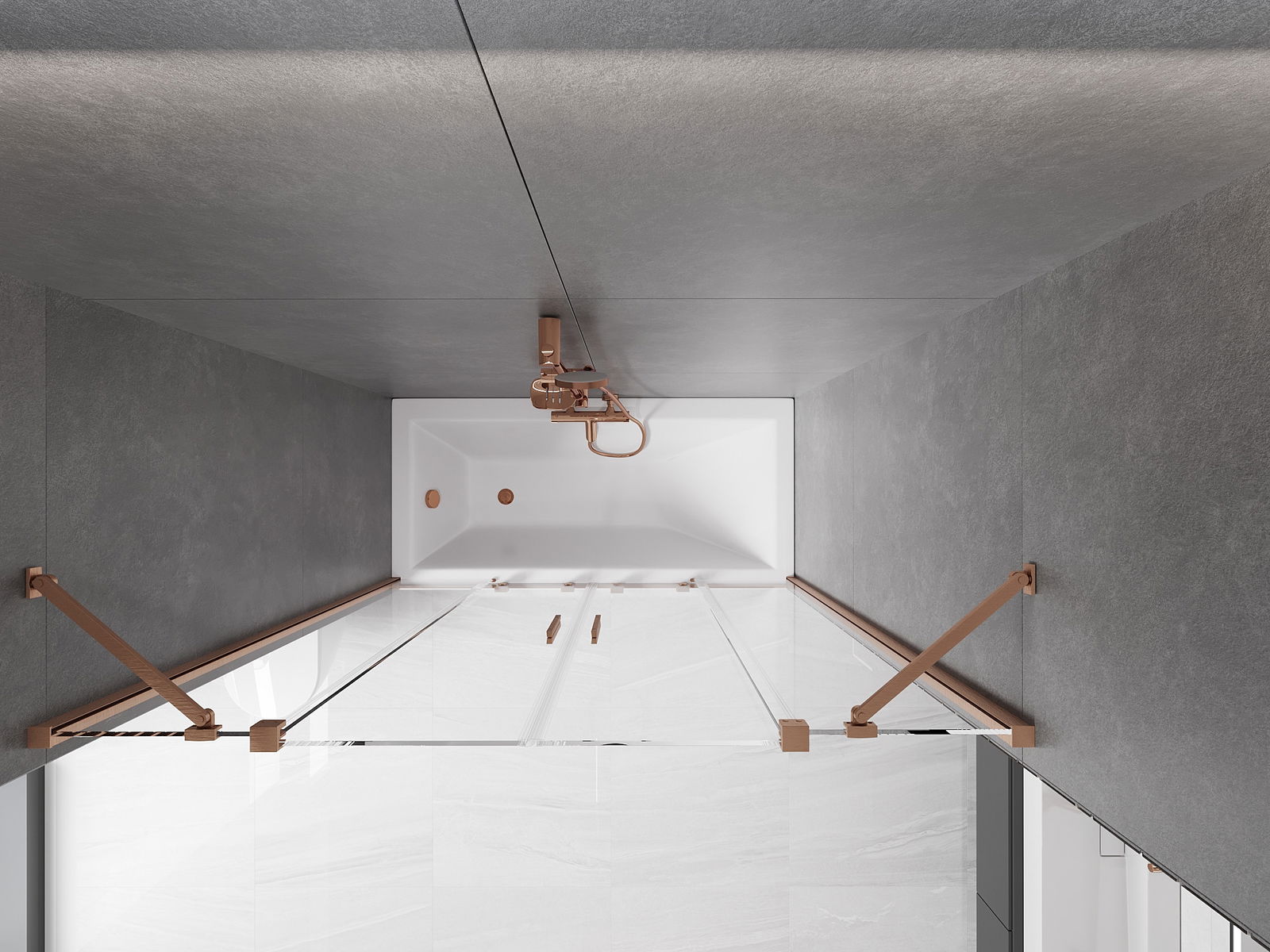 Mexen Velar Duo paratia per vasca da bagno a 2 ante scorrevoli 160 x 150 cm, trasparente, rame spazzolato - 896-160-000-02-65