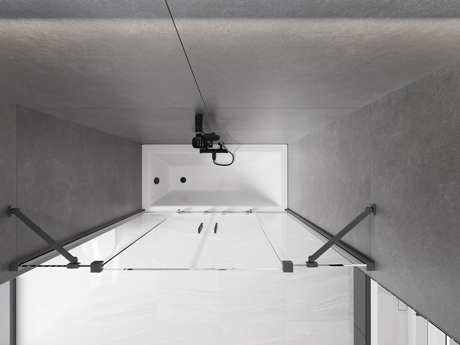Mexen Velar Duo paravento vasca da bagno a 2 pannelli scorrevoli 140 x 150 cm, trasparente, grigio canna di fucile spazzolato