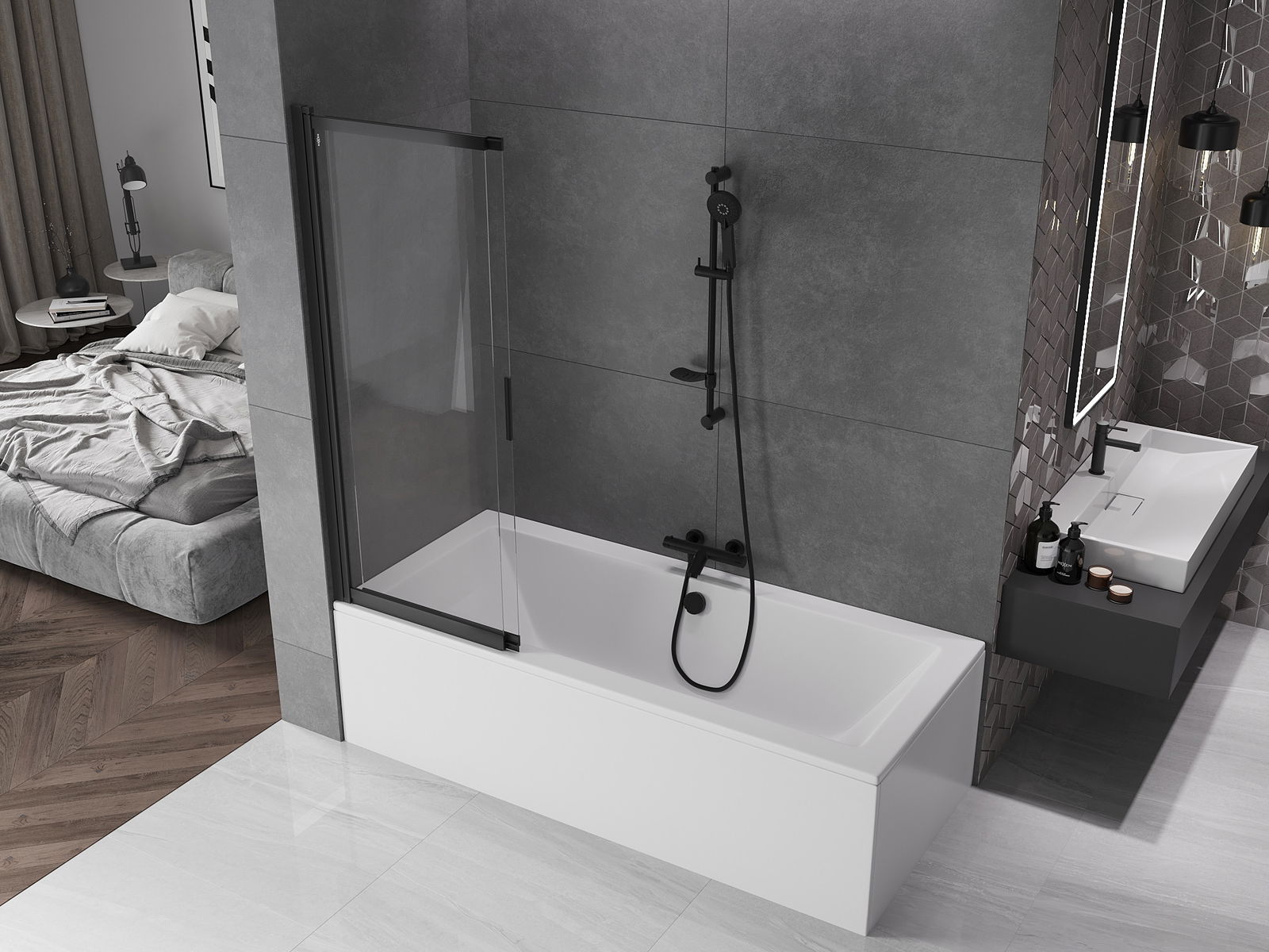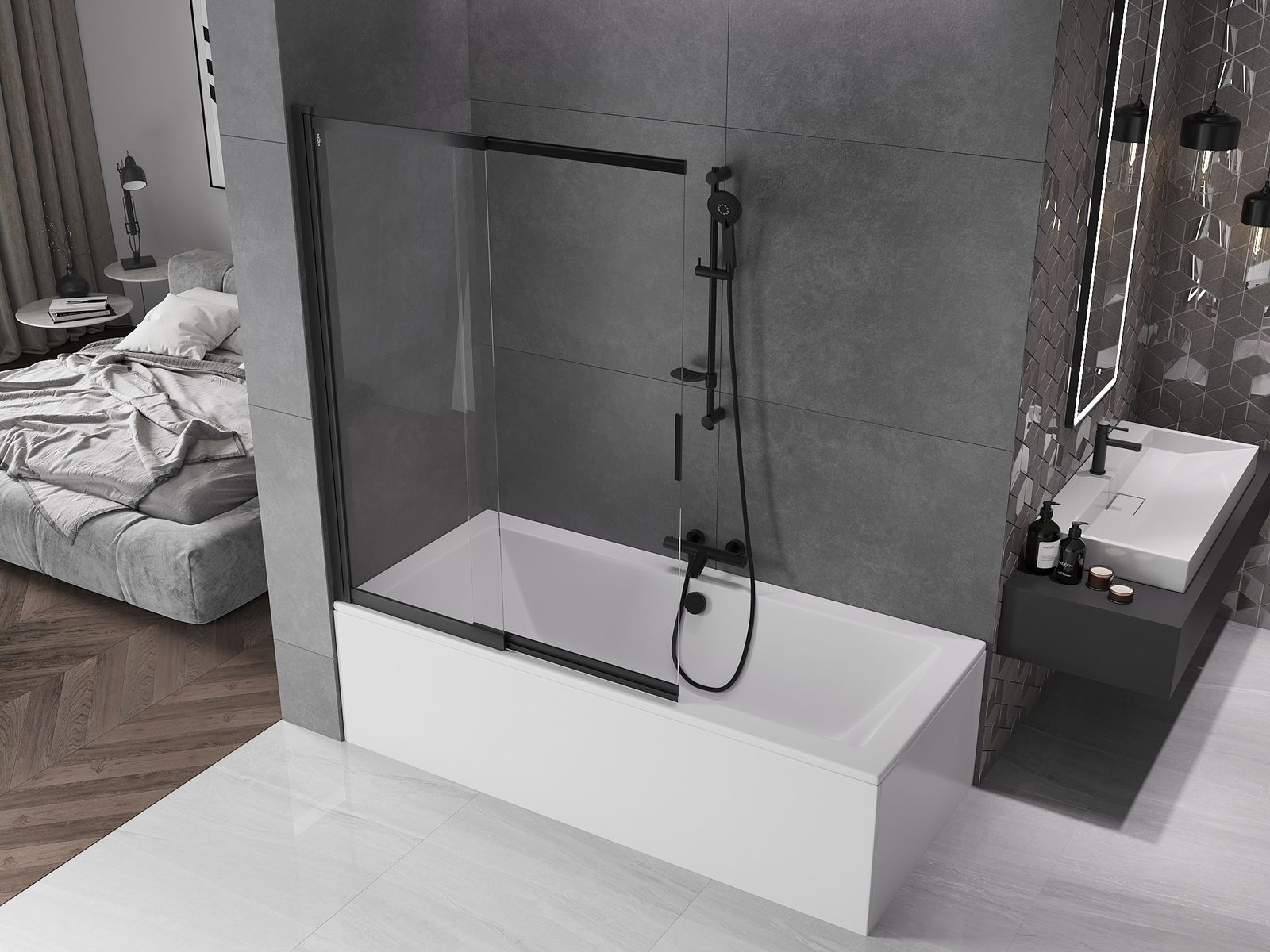 Mexen Fox paravento vasca da bagno a 2 ante scorrevoli 120 x 150 cm, trasparente, nero - 891-120-002-70-00