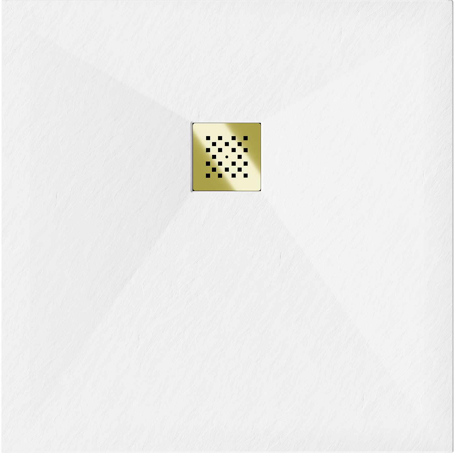 Mexen Stone+ piatto doccia in composito quadrato 80 x 80 cm, bianco, griglia dorata - 44108080-G