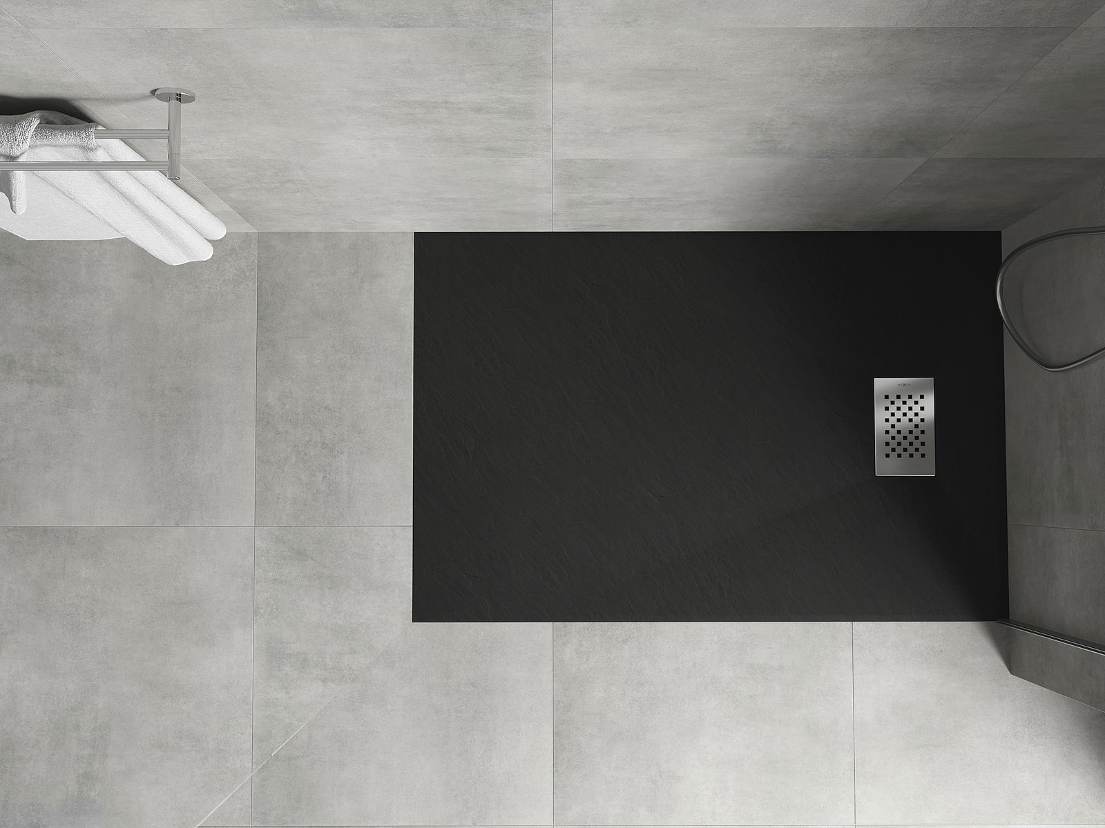 La superficie del piatto doccia con la sua struttura ricorda la pietra. Costituisce una combinazione eccezionale di aspetto naturale e design moderno degli interni. Aggiunge carattere, sottolinea l'estetica e l'eleganza dell'arredamento del bagno e affascina con la sua forma.