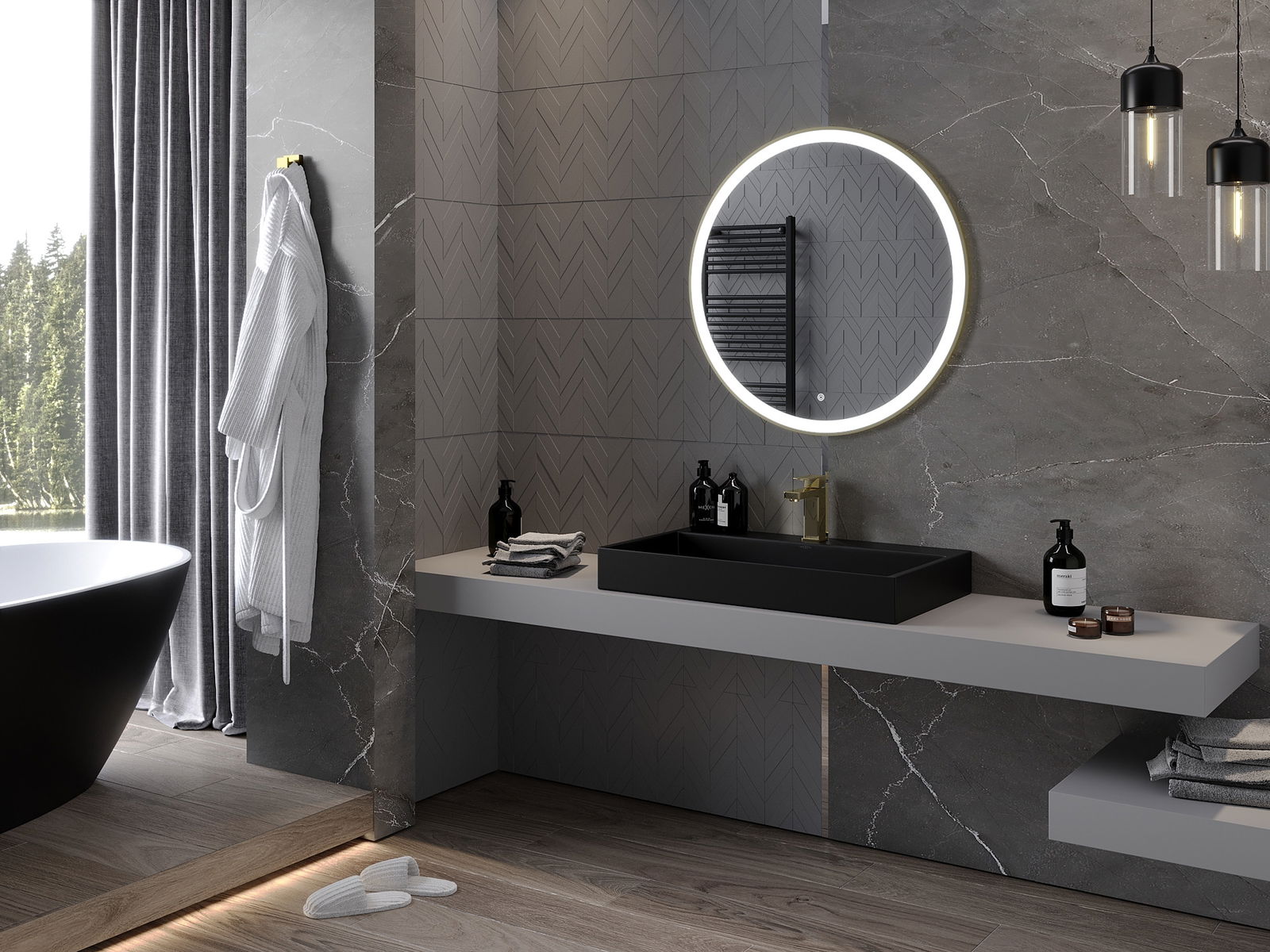 L'illuminazione a LED dello specchio è un elemento pratico che facilita la cura quotidiana, grazie alla possibilità di illuminare perfettamente il viso. L'illuminazione conferisce al bagno una finitura moderna, enfatizzando il suo design elegante.