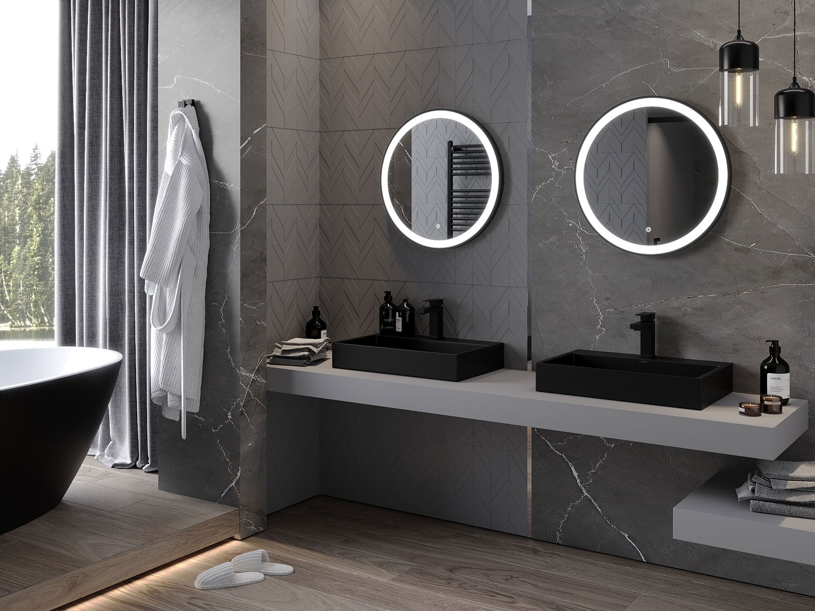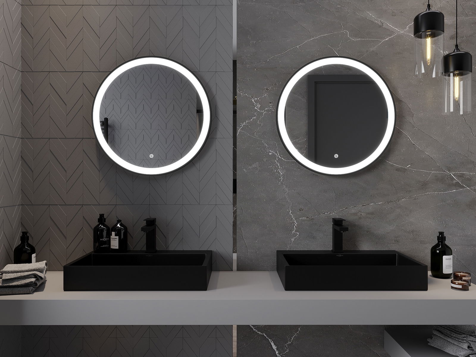 Mexen Esso specchio da bagno illuminato, rotondo 60 cm, LED 6000K, antiappannamento, cornice nera - 9825-060-060-611-70