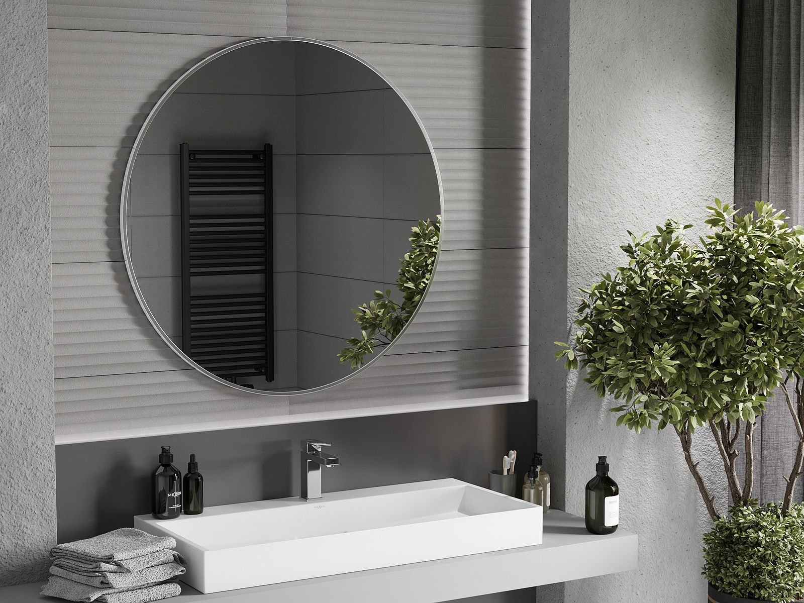 Mexen Loft specchio da bagno rotondo 100 cm, cornice inox - 9850-100-100-000-10