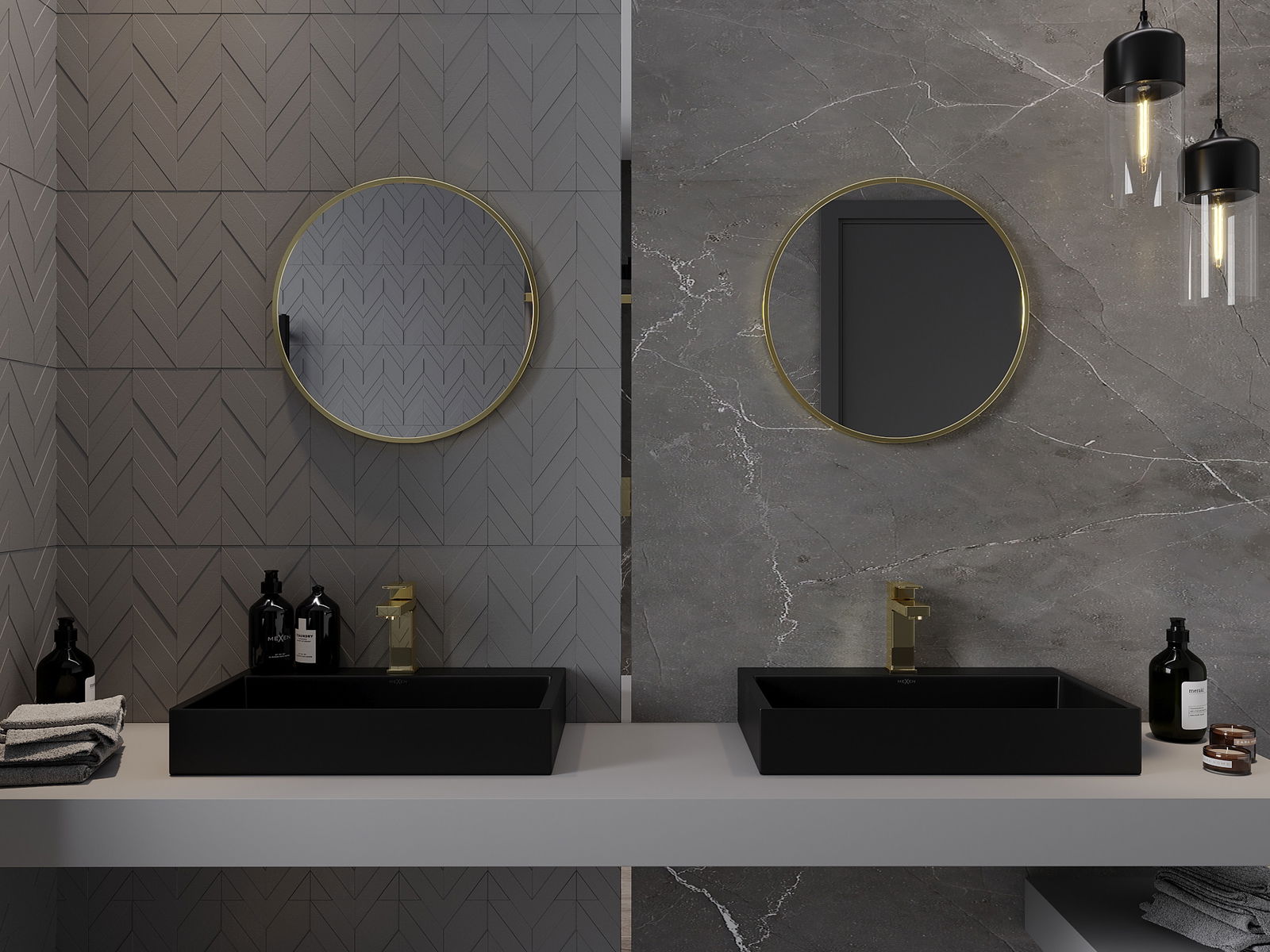 Mexen Loft specchio da bagno rotondo 30 cm, cornice dorata - 9850-030-030-000-50