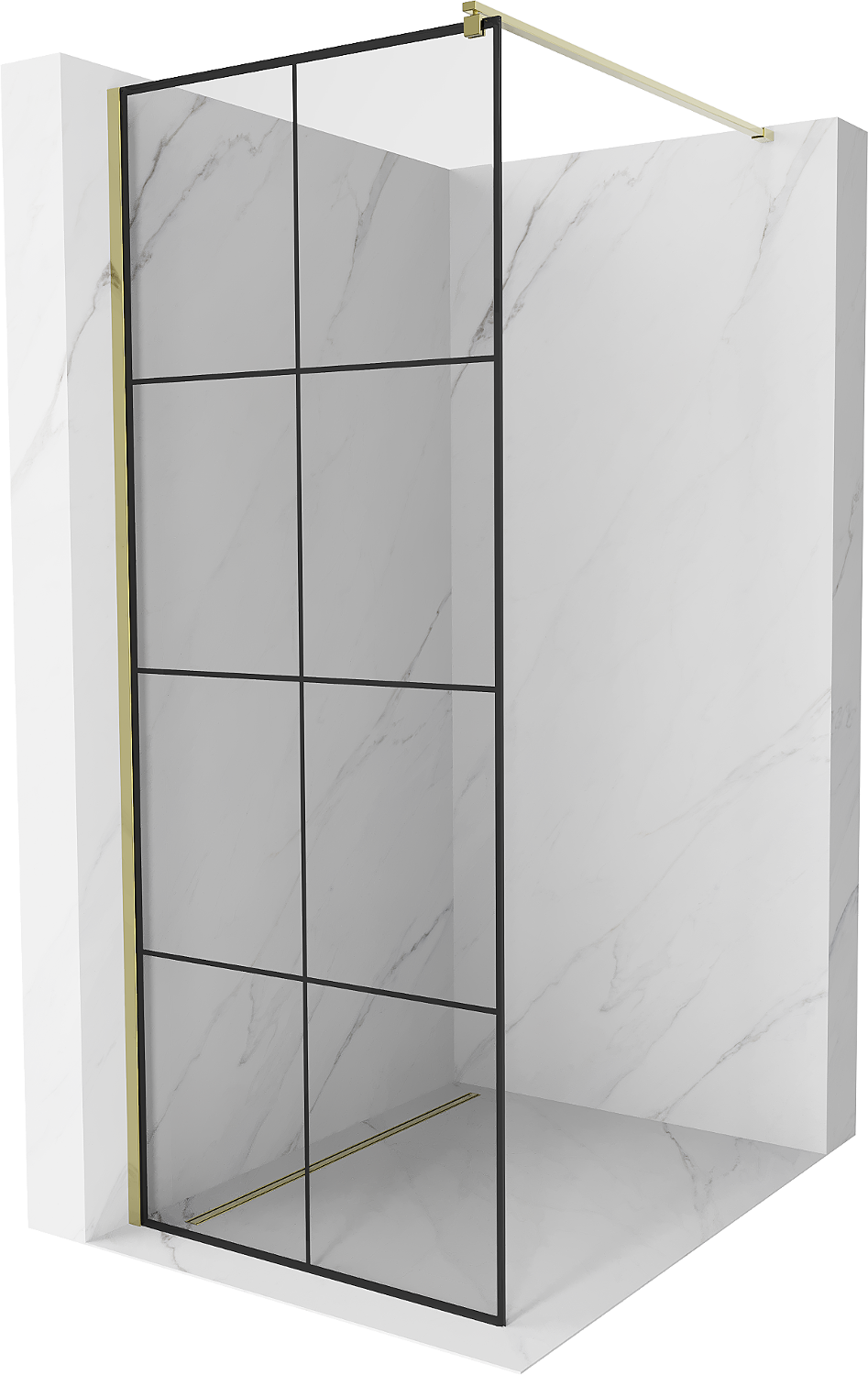 Mexen Kioto parete doccia Walk-in 80 x 200 cm, griglia nera 8 mm, oro - 800-080-101-50-77