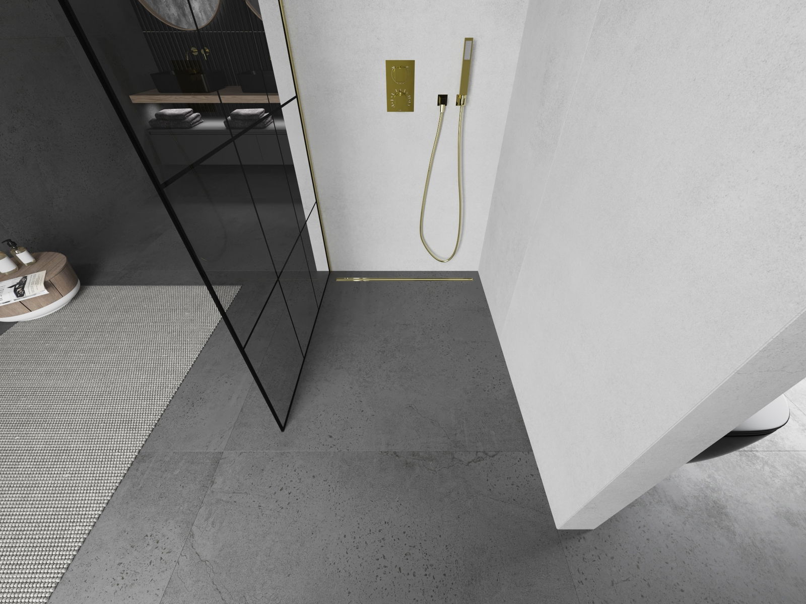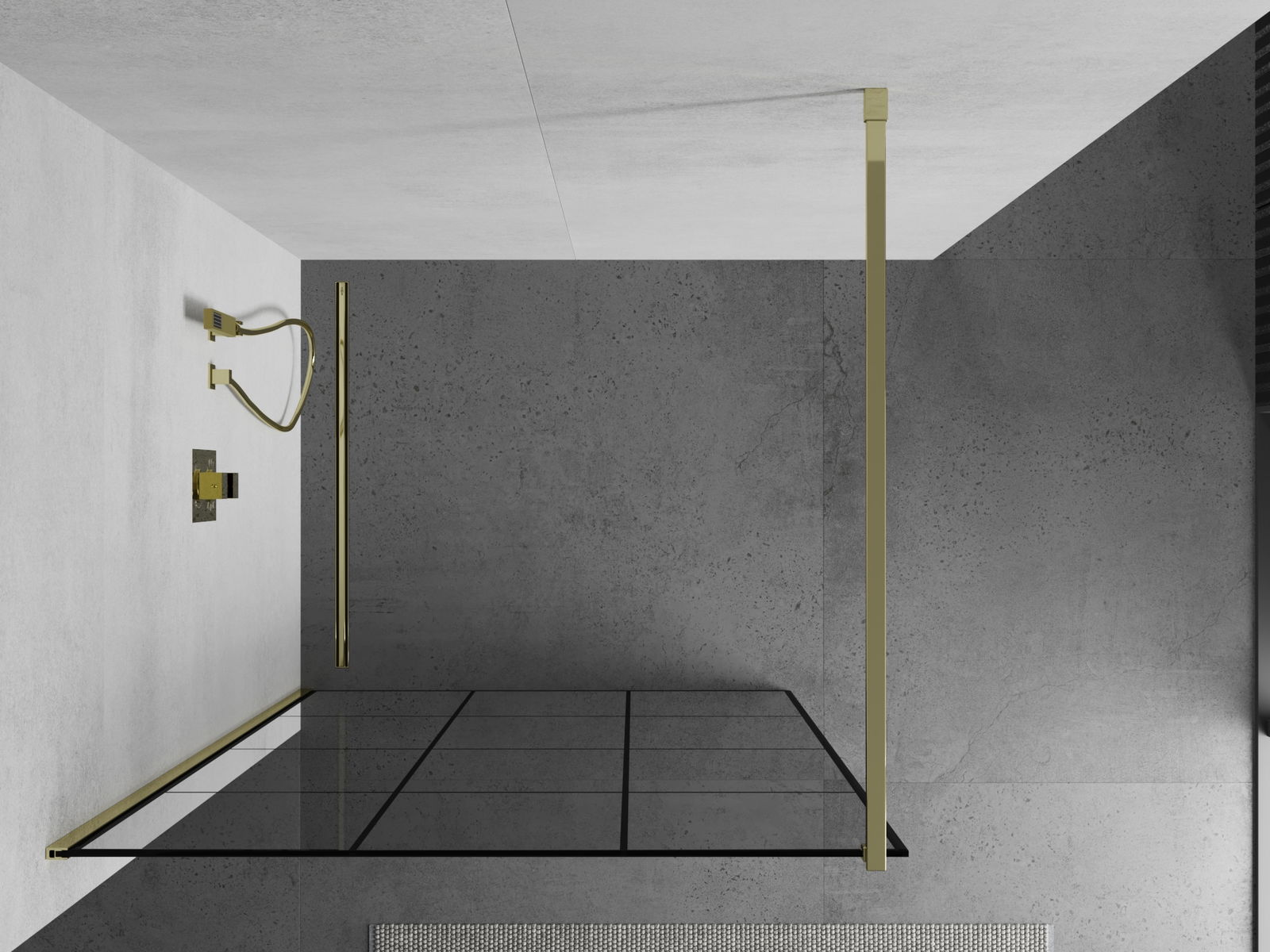 Mexen Kioto parete doccia Walk-in 110 x 200 cm, griglia nera 8 mm, oro - 800-110-101-50-77