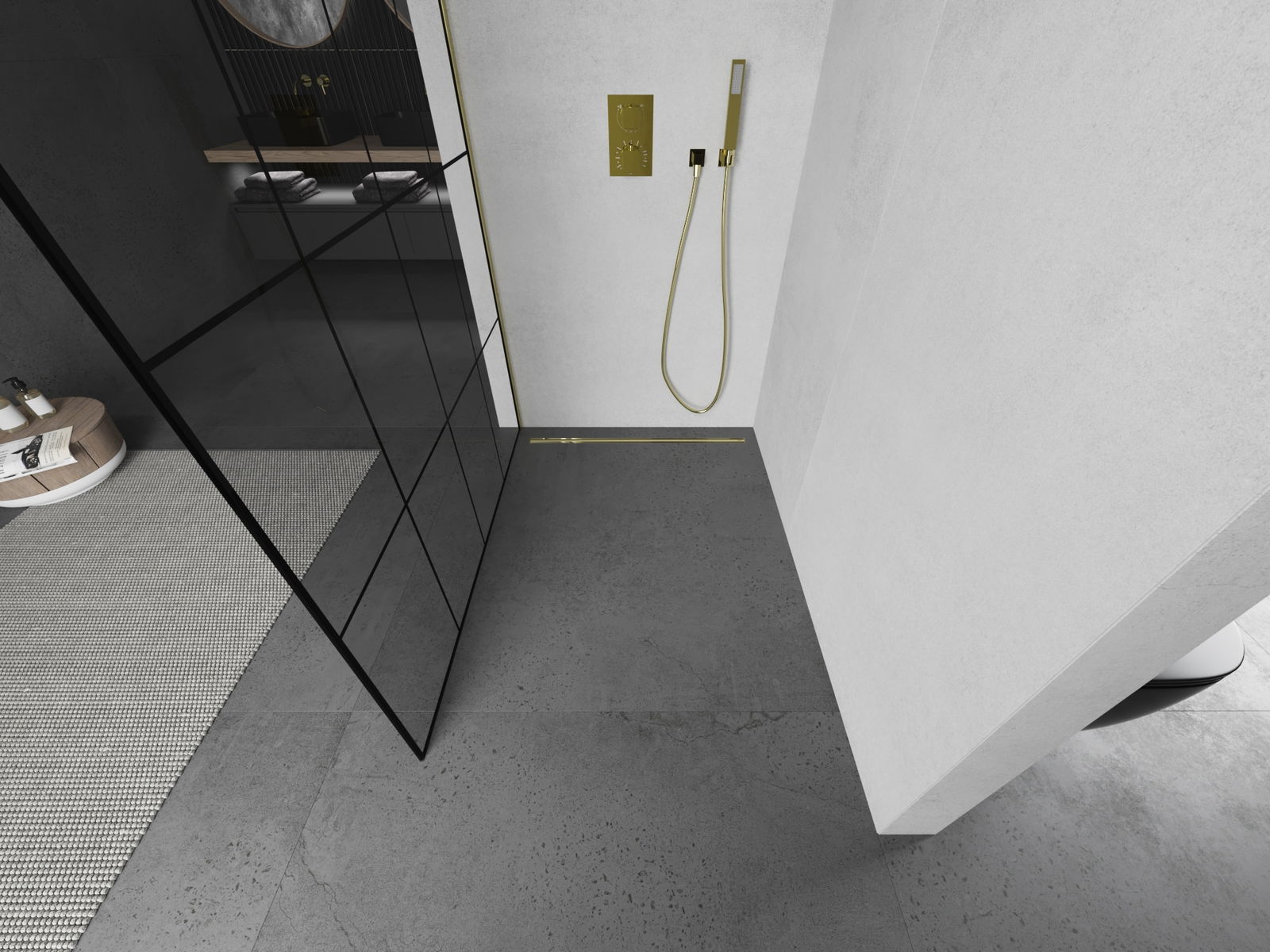 Mexen Kioto parete doccia Walk-in 130 x 200 cm, griglia nera 8 mm, oro - 800-130-101-50-77