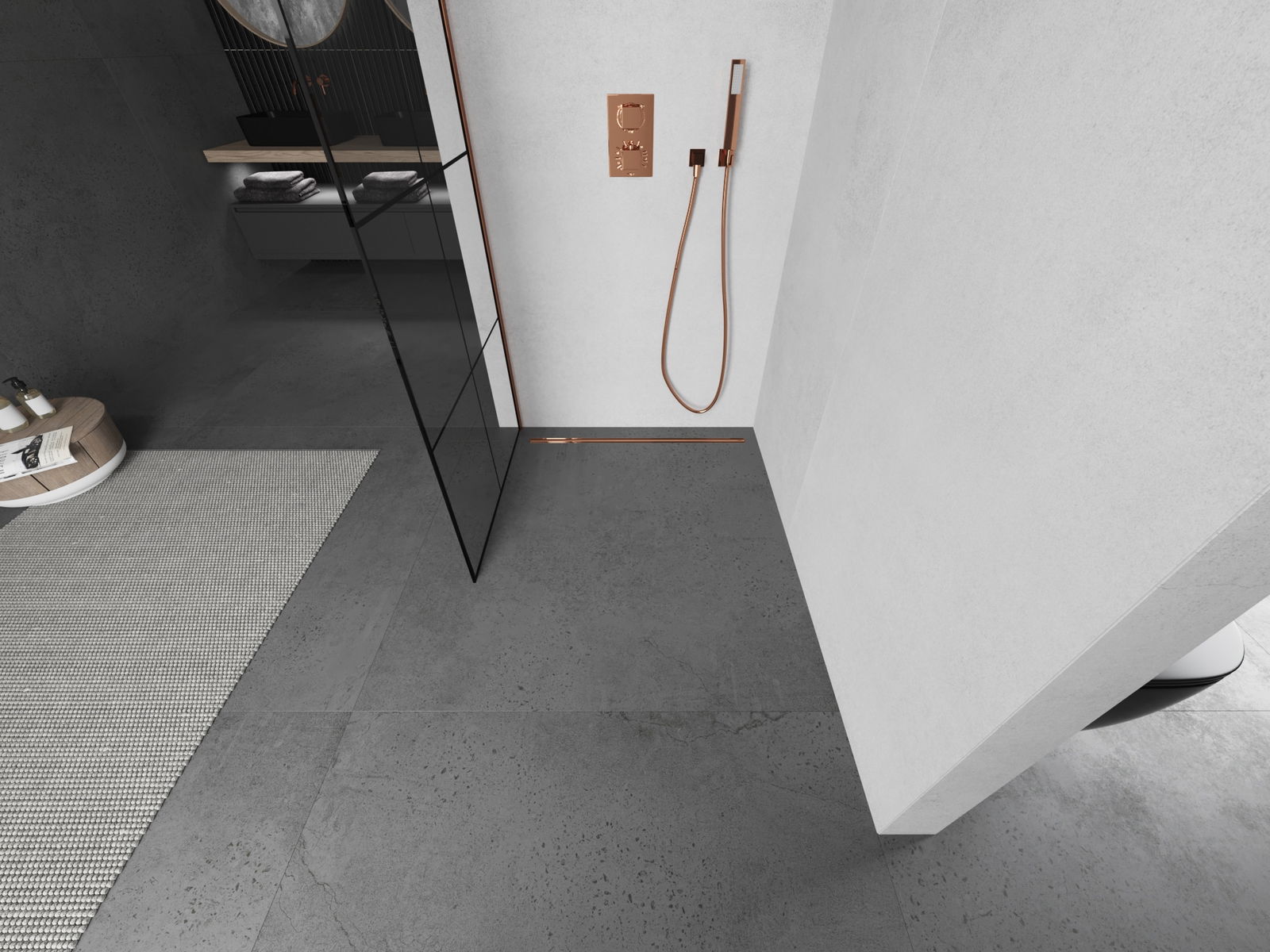 Mexen Kioto parete doccia Walk-in 70 x 200 cm, griglia nera 8 mm, oro rosa - 800-070-101-60-77