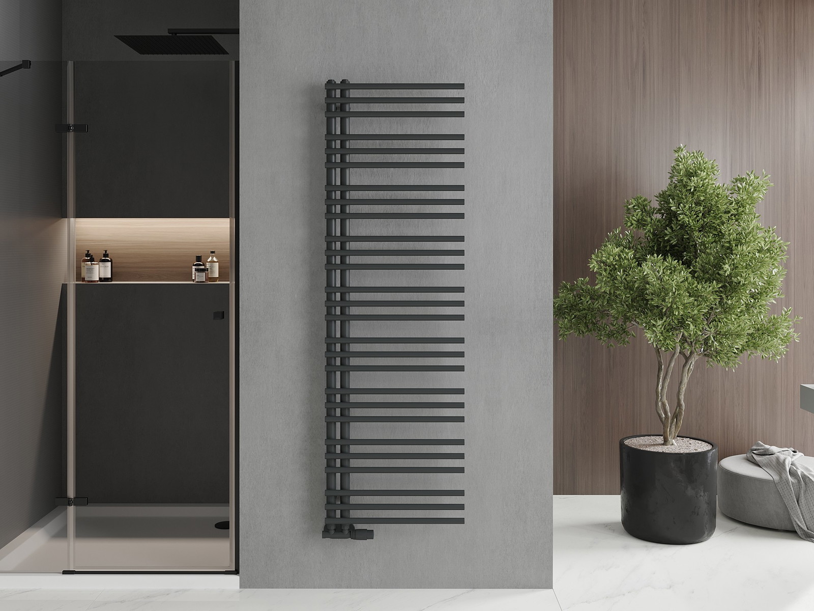 Mexen Neptun è un elegante e funzionale radiatore decorativo da bagno, che completa perfettamente gli interni moderni. Le dimensioni di 1600 x 500 mm e il colore antracite RAL 7016 lo rendono un elemento di stile in ogni bagno. Grazie alla potenza termica di 662 W (a 75/65/20 °C) garantisce un riscaldamento efficace dello spazio. Realizzato in acciaio resistente, con reazione al fuoco A1, è resistente alla corrosione e facile da montare grazie al kit di fissaggio incluso. Mexen Neptun offre anche la possibilità di installare il termoventilatore e dispone di collegamenti centrali 4xG ½″.