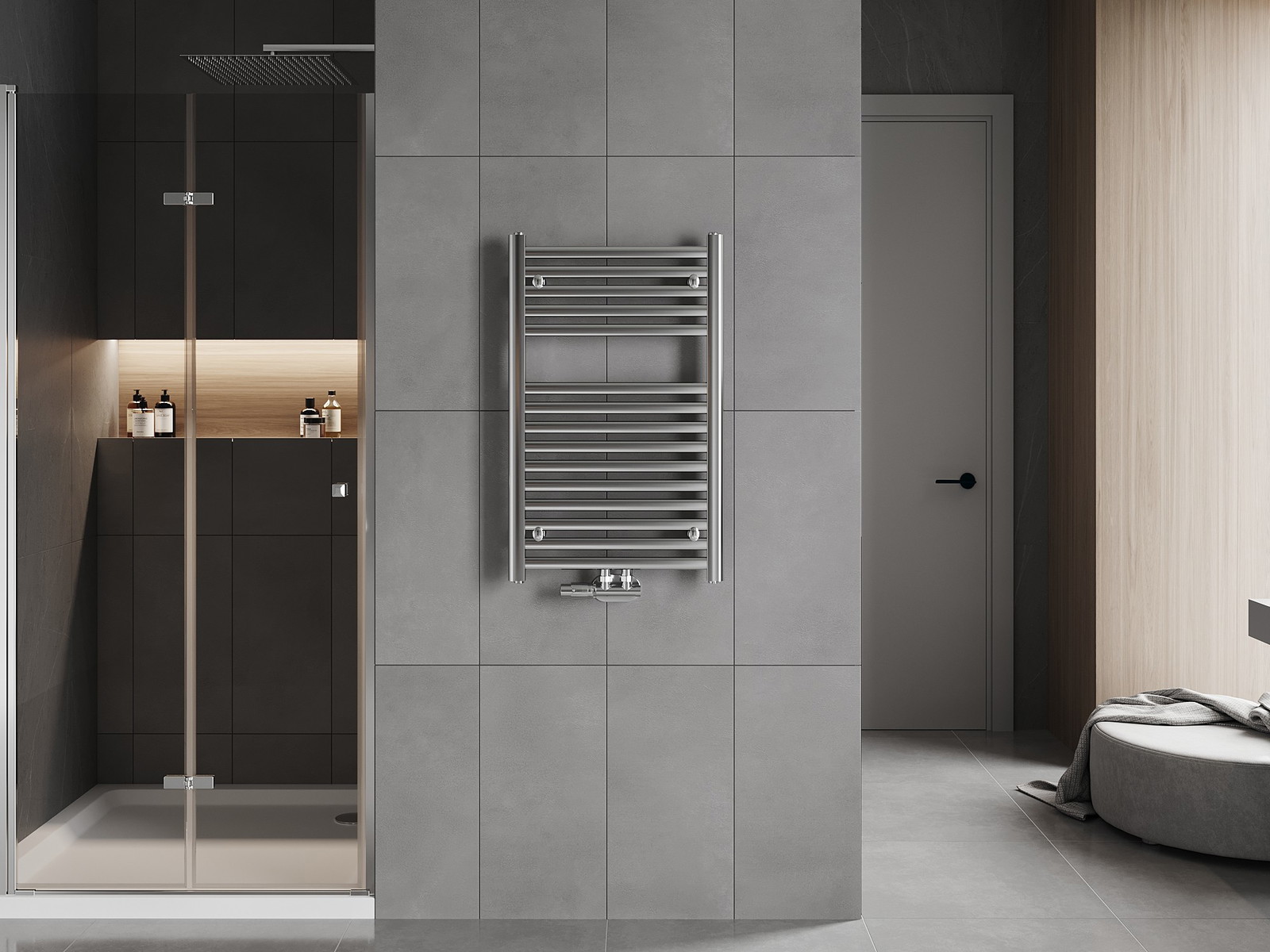Mexen Hades è un moderno radiatore da bagno con finitura cromata elegante, che grazie alle dimensioni di 800 x 500 mm e alla potenza di 305 W assicura una temperatura ottimale in ogni bagno. Il prodotto si distingue per l'alta qualità e il rivestimento resistente alla corrosione. Il sistema di montaggio consente di scegliere fra due distanze di collegamento: inferiore o centrale. Il radiatore è compatibile con resistenze elettriche e offre una pressione di lavoro massima di 0,6 Mpa e una temperatura di 95 °C. Il set include sospensioni, kit di montaggio, tappi di chiusura e sfiato. Il peso è di 6,43 kg, il che facilita l'installazione.