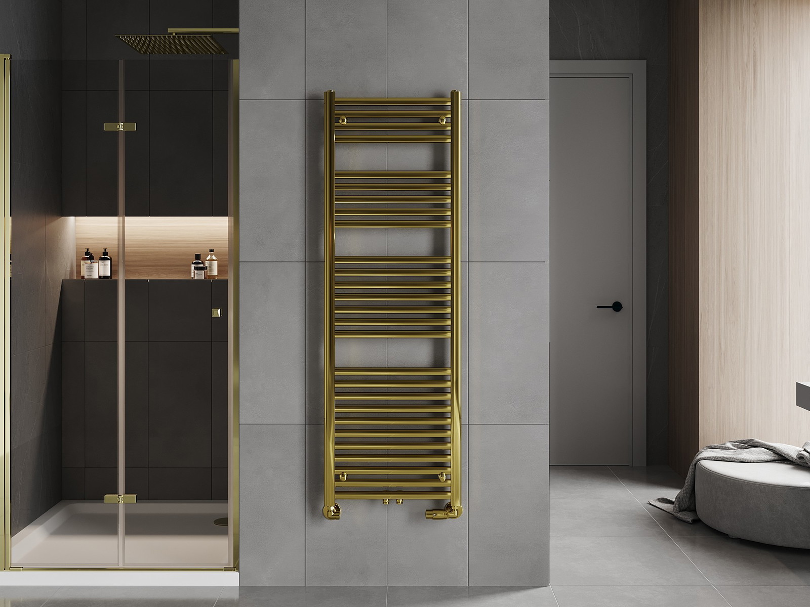Mexen Hades è un elegante radiatore da bagno dorato con dimensioni di 1500x500 mm, che offre non solo un aspetto stiloso ma anche un'efficienza grazie alla potenza di 555 W. Realizzato in acciaio di alta qualità, resistente alla corrosione grazie al rivestimento di vernice durevole. Grazie alle diverse opzioni di distanza di collegamento (inferiore 45 cm, centrale 5 cm) e alla possibilità di installare la resistenza, è estremamente funzionale. La sua struttura leggera (11,39 kg) e la resistenza alle alte temperature (max 95 °C) e alla pressione (0,6 Mpa) lo rendono una scelta affidabile per ogni bagno.