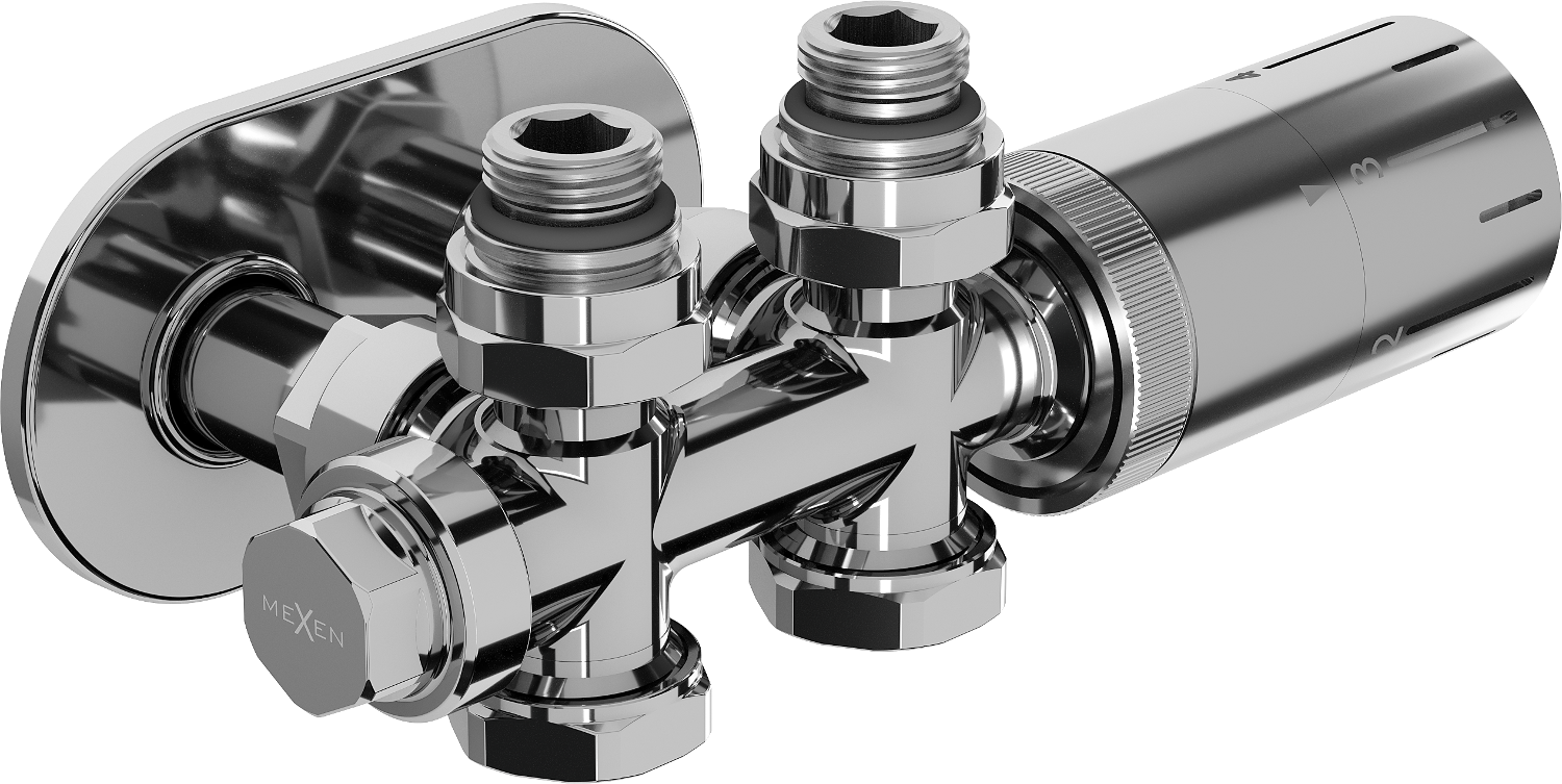 Valvola universale di alimentazione e chiusura per collegamenti angolari e diretti, utilizzabile indipendentemente dal fatto che il collegamento sia nel muro o nel pavimento