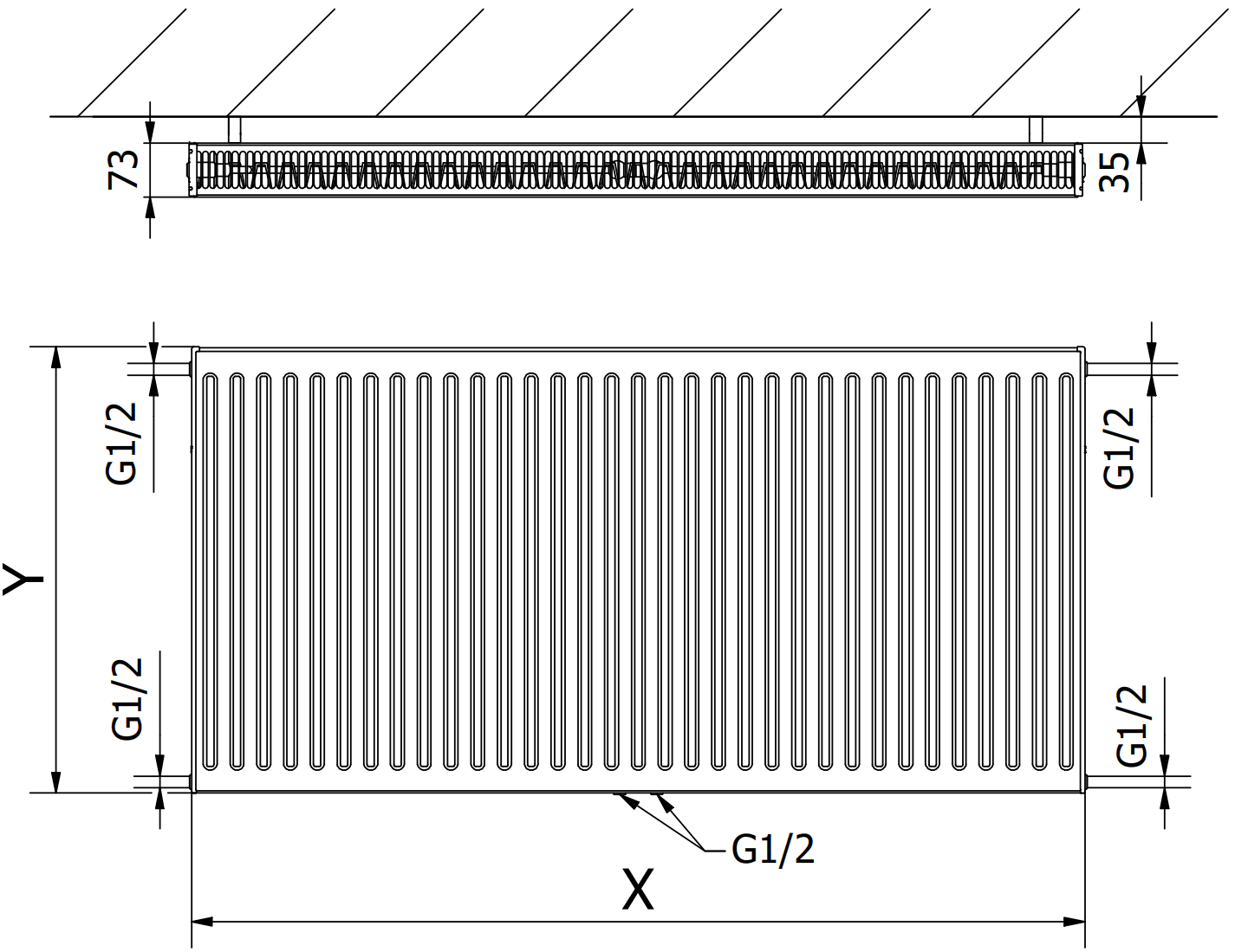 Distanza tra i canali d'acqua verticali: 33,3 mm