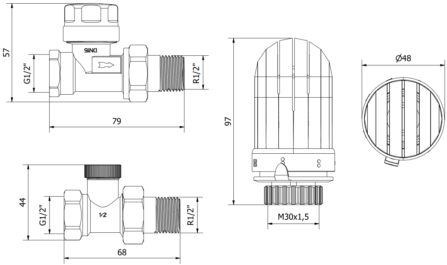 Filettatura del termostato: M30 x 1,5 mm