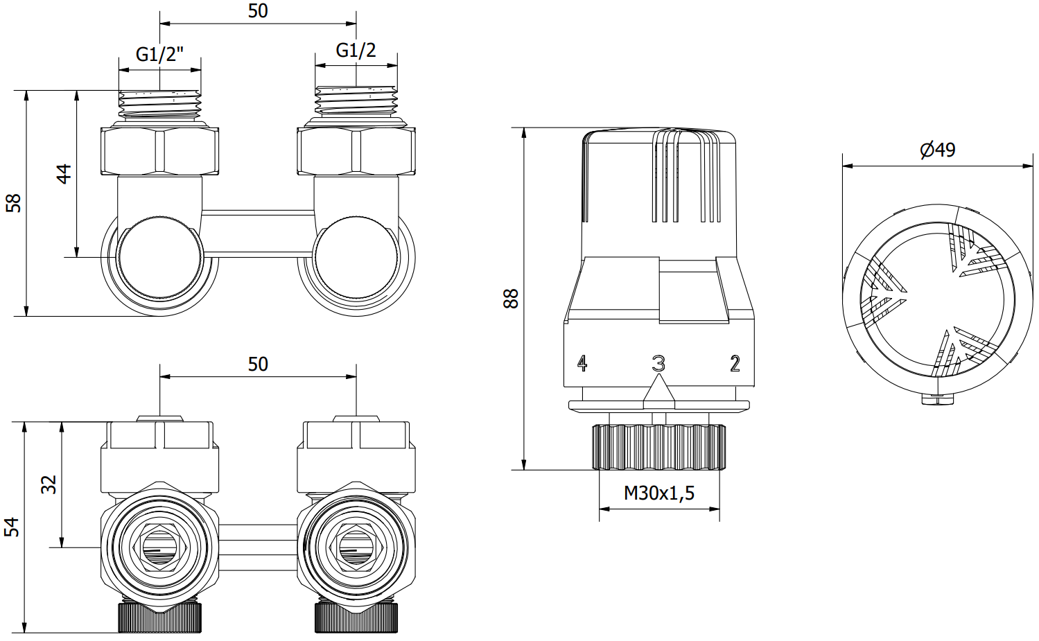 Diametro connessione: G 1/2" e pex 16x2 mm