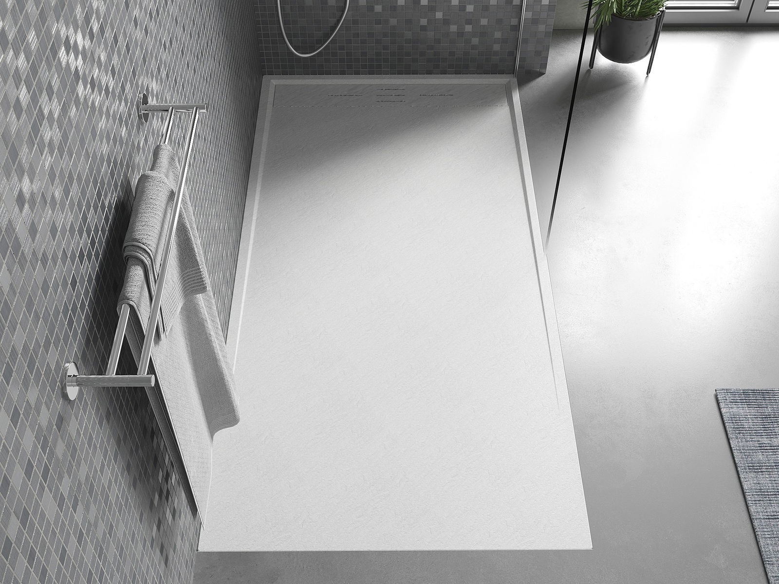 La superficie del piatto doccia con la sua struttura ricorda la pietra. Costituisce una combinazione eccezionale di aspetto naturale e design moderno degli interni. Aggiunge carattere, sottolinea l'estetica e l'eleganza dell'arredamento del bagno e affascina con la sua forma.