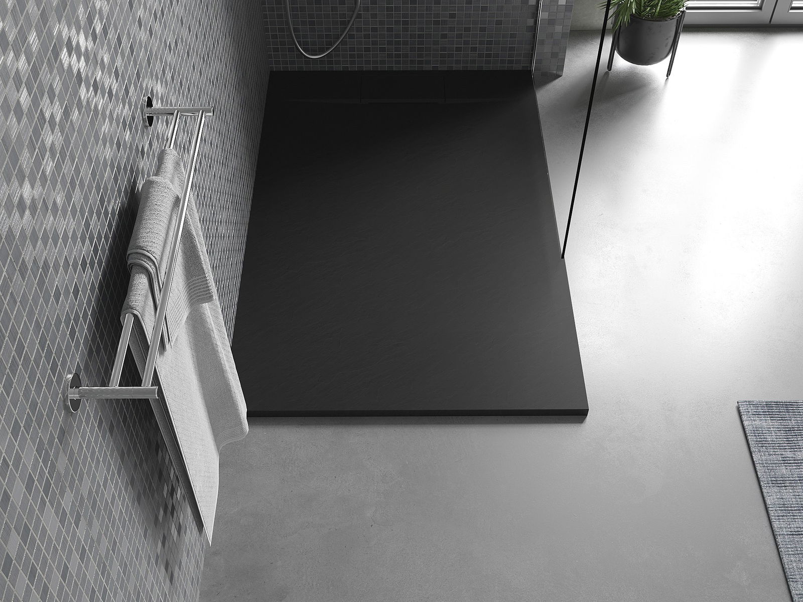 La superficie del piatto doccia con la sua struttura ricorda la pietra. Costituisce una combinazione eccezionale di aspetto naturale e design moderno degli interni. Aggiunge carattere, sottolinea l'estetica e l'eleganza dell'arredamento del bagno e affascina con la sua forma.