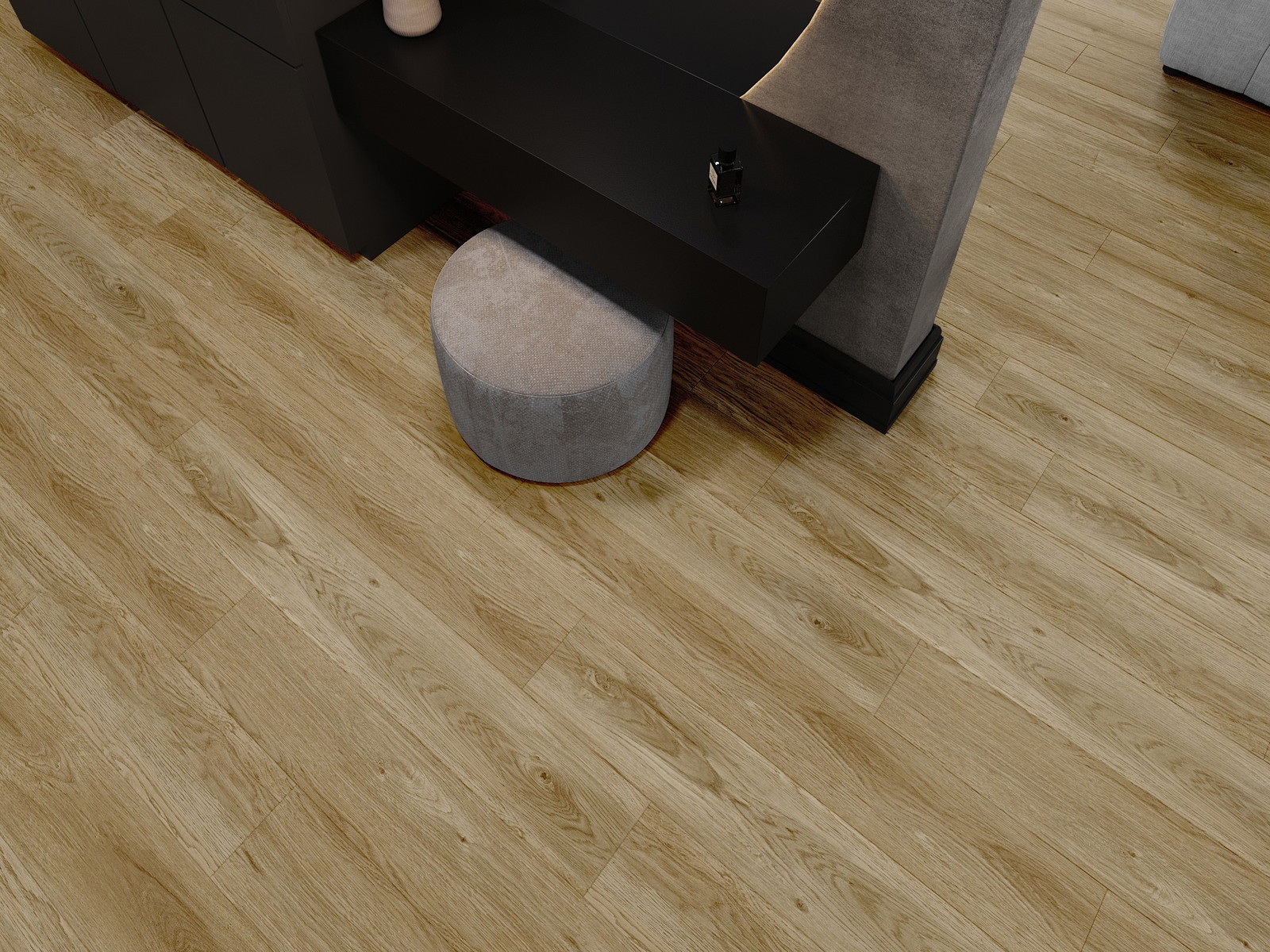 I pannelli hanno una fuga a 4 lati - ogni lato è stato fresato in modo tale che, una volta posati, formi un giunto a forma di V. Questo design conferisce al pavimento una struttura più marcata, che le dona profondità e un carattere estetico. Questo effetto è particolarmente apprezzato nelle disposizioni moderne, dove i dettagli sottolineano l'aspetto unico dell'interno.