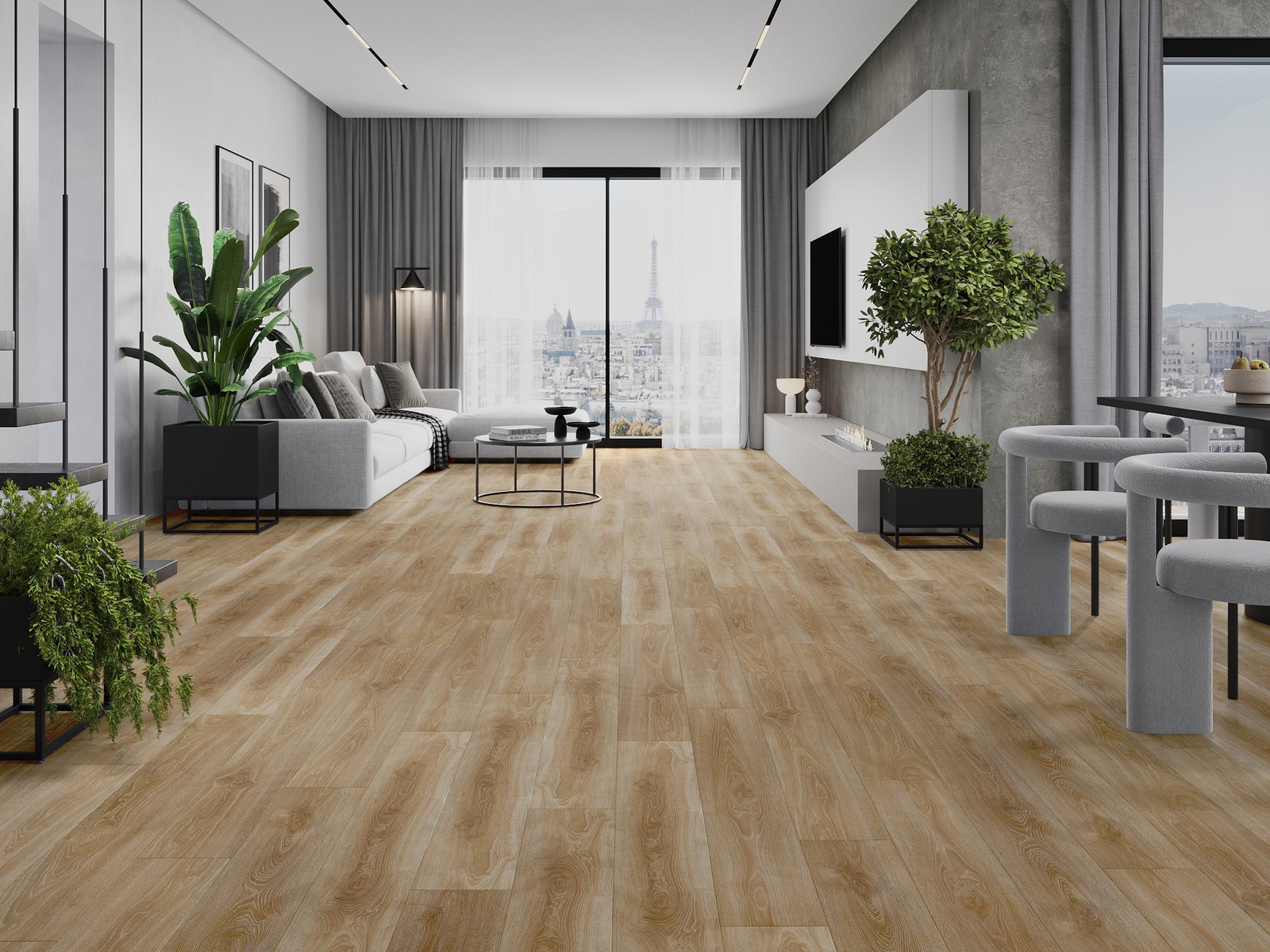 I pannelli hanno una fuga a 4 lati - ogni lato è stato fresato in modo tale che, una volta posati, formi un giunto a forma di V. Questo design conferisce al pavimento una struttura più marcata, che le dona profondità e un carattere estetico. Questo effetto è particolarmente apprezzato nelle disposizioni moderne, dove i dettagli sottolineano l'aspetto unico dell'interno.