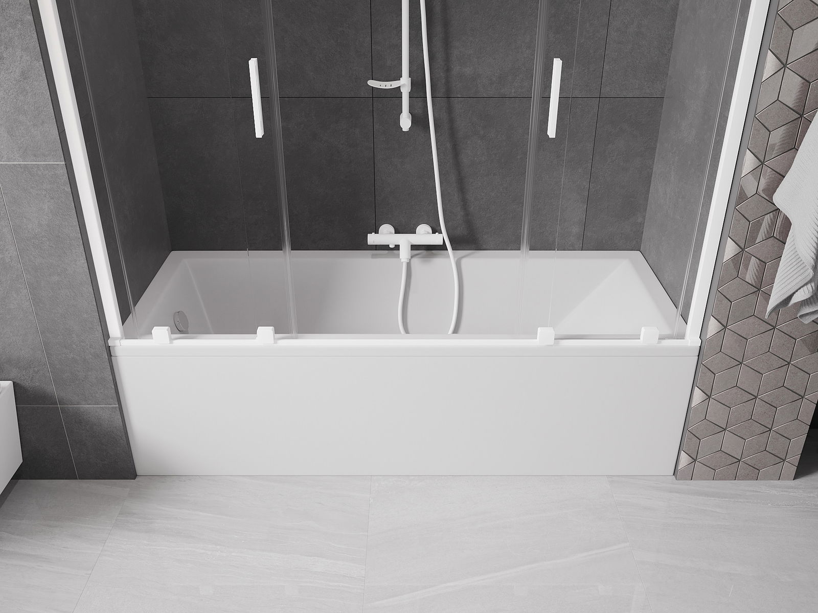 Mexen Velar Duo paravento per vasca da bagno a 2 ante scorrevoli 190 x 150 cm, trasparente, bianco - 896-190-000-02-20