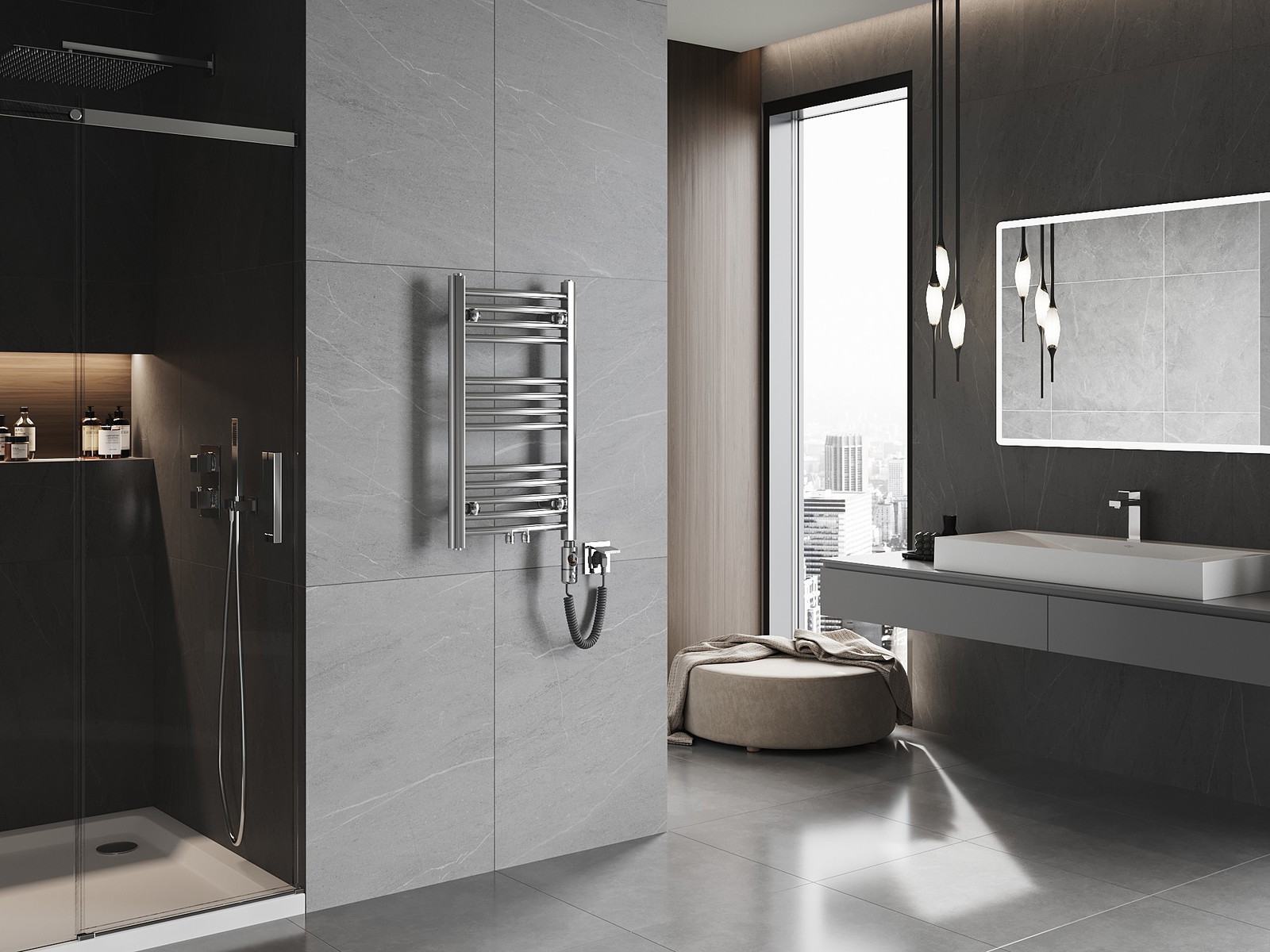 Il termosifone elettrico Mexen Ares con dimensioni di 700 x 400 mm e potenza di 300 W in colore cromo è una combinazione unica di modernità e funzionalità. Realizzato in acciaio, dispone di 13 barre riscaldanti e controllo touch LED. Garantisce sicurezza grazie alla protezione contro il funzionamento a 'secco' e al termostato incorporato. Il sensore Sensitive consente di regolare la temperatura tra 40°C e 65°C, mentre la funzione Comfort consente l'asciugatura nel tempo selezionato. Alta qualità del rivestimento protegge dalla corrosione. Il radiatore richiede riempimento con acqua o miscela con glicole.