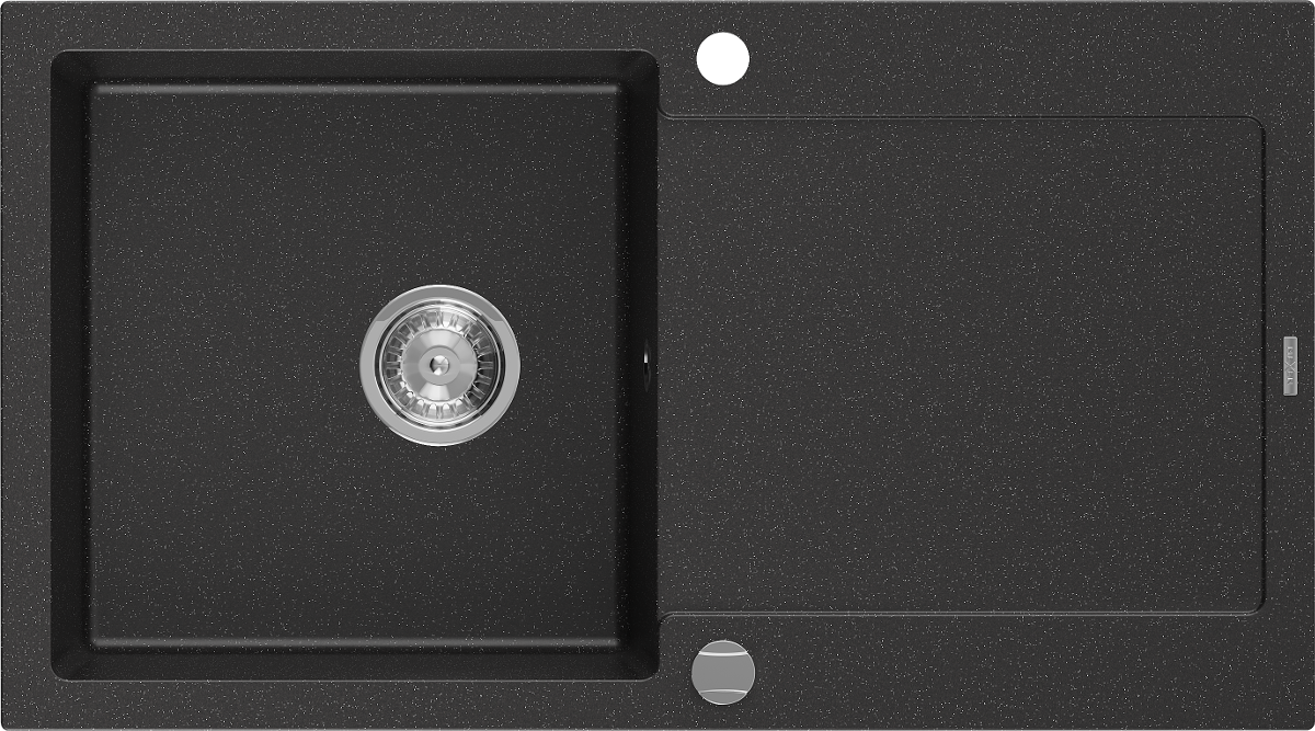 Mexen Leo lavello in granito a 1 vasca con scolapiatti 900 x 500 mm, nero/argento metallico, sifone cromato - 6501901010-73
