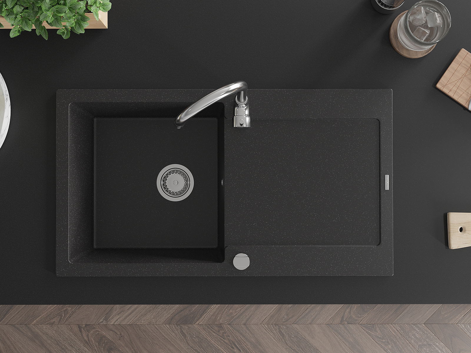 Il lavello è realizzato in granito di alta qualità. Rappresenta un complemento elegante e, soprattutto, pratico per ogni cucina, indipendentemente dal suo stile. L'alta qualità e la durata del granito garantiscono un utilizzo che dura per molti anni.