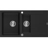 Mexen Matias lavello in granito 1,5 vasca con sgocciolatoio 900 x 505 mm, nero/metallo argento, sifone cromato - 6502901505-73