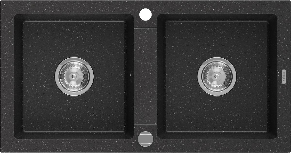 Mexen Mario lavello in granito a 2 vasche 820 x 436 mm, nero/argento metallizzato, sifone cromato - 6504822000-73