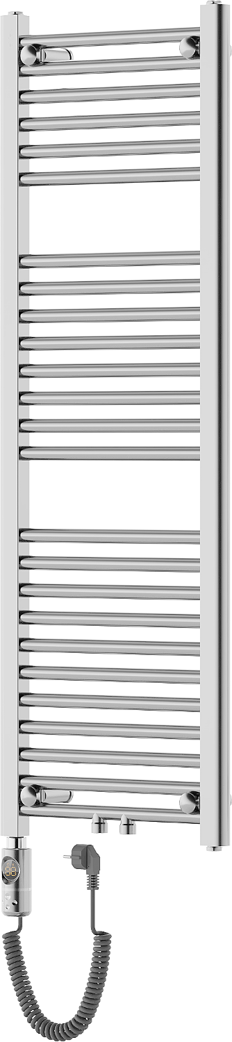 Mexen Mars è un elegante radiatore elettrico delle dimensioni di 1200 x 400 mm e una potenza di 300 W, ideale per interni moderni grazie alla struttura in acciaio cromato. Questo compatto radiatore con 25 barre riscaldanti ha un termostato integrato che mantiene la temperatura ideale, e grazie al controllo tattile LED e alla funzione Sensitive permette di regolare la temperatura nell'intervallo 40°C-65°C. La funzione Comfort permette di asciugare nel tempo selezionato, e il blocco genitori aumenta la sicurezza d'uso. Grado di protezione IP44 e il rivestimento resistente alla corrosione garantiscono una lunga durata.