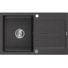 Mexen Bruno lavello in granito 1-vasca con sgocciolatoio 795 x 495 mm, nero/argento metallizzato, sifone cromo- 6513791010-73