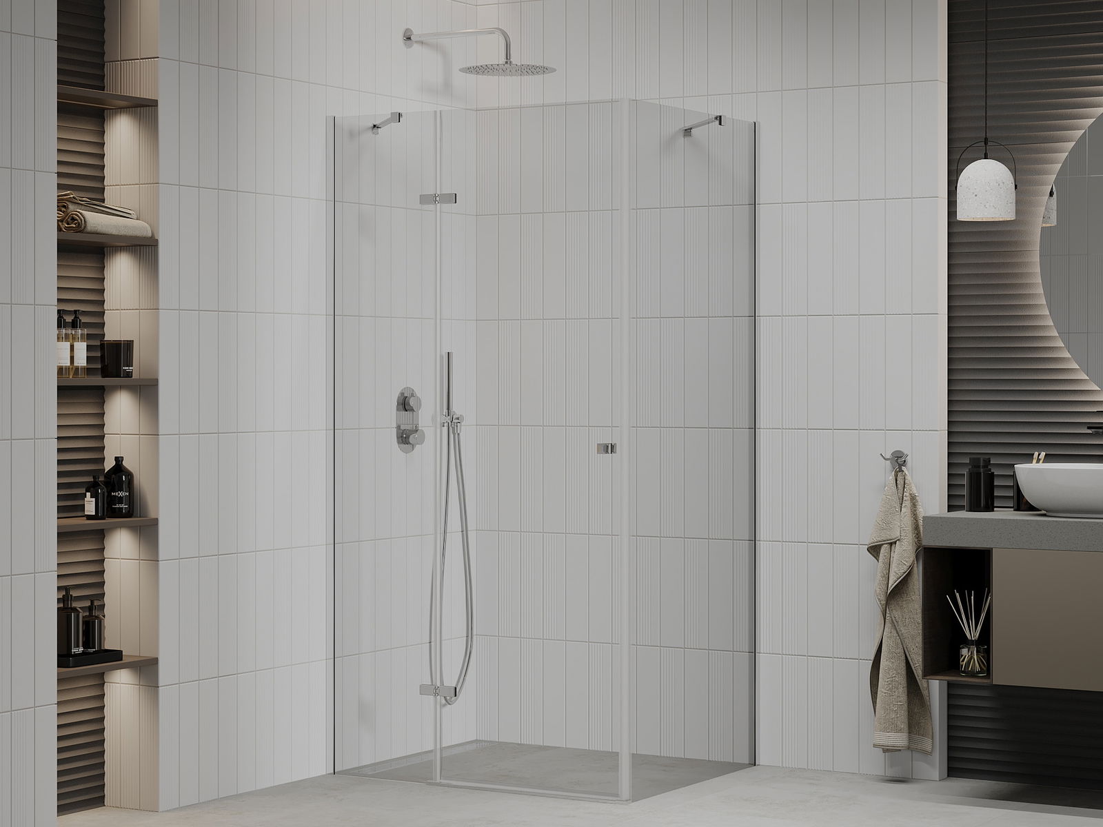 Il prodotto, a seconda delle esigenze, può essere installato sia sul piatto doccia che direttamente sul pavimento. Il metodo di installazione universale consente di adattare il prodotto a diversi tipi di bagni e configurazioni di spazio.