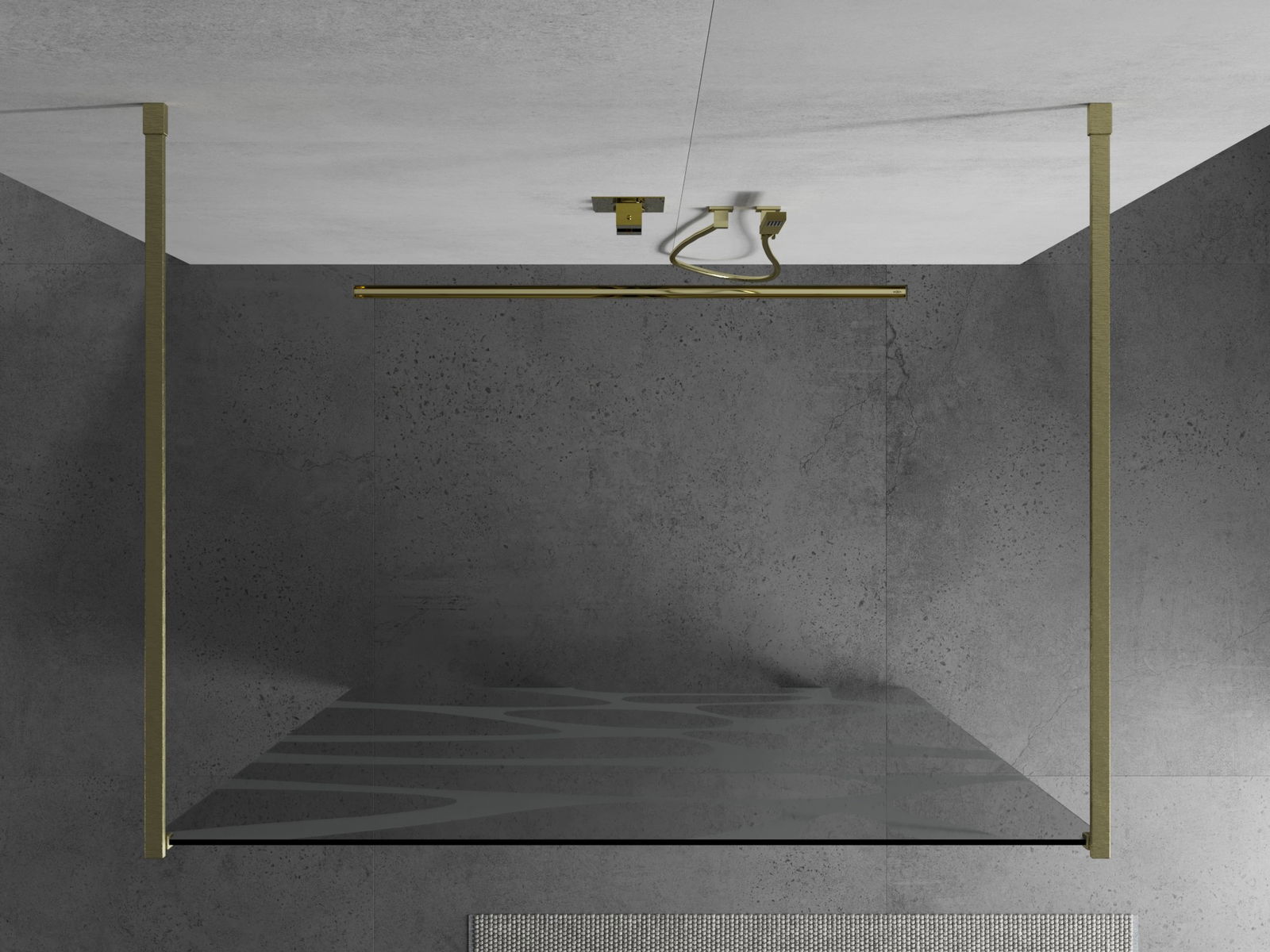 Mexen Kioto parete doccia autonoma 100 x 200 cm, onda bianca 8 mm, oro spazzolato - 800-100-002-55-97