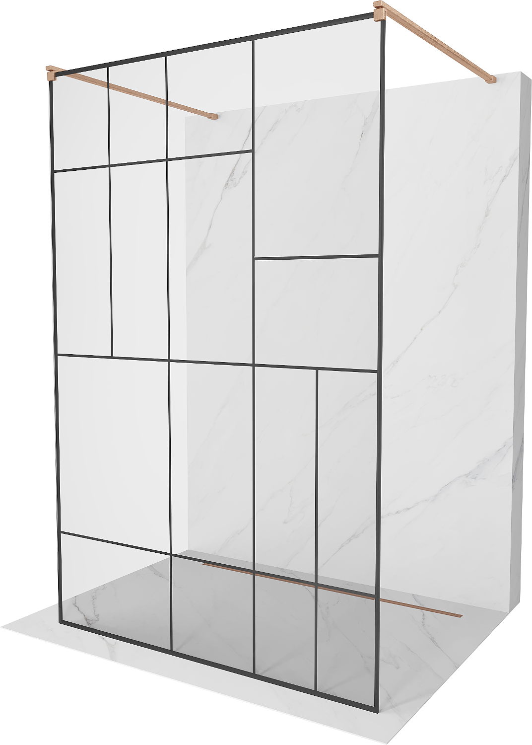 Mexen Kioto parete doccia free-standing 140 x 200 cm, motivo nero 8 mm, rame spazzolato - 800-140-002-65-78