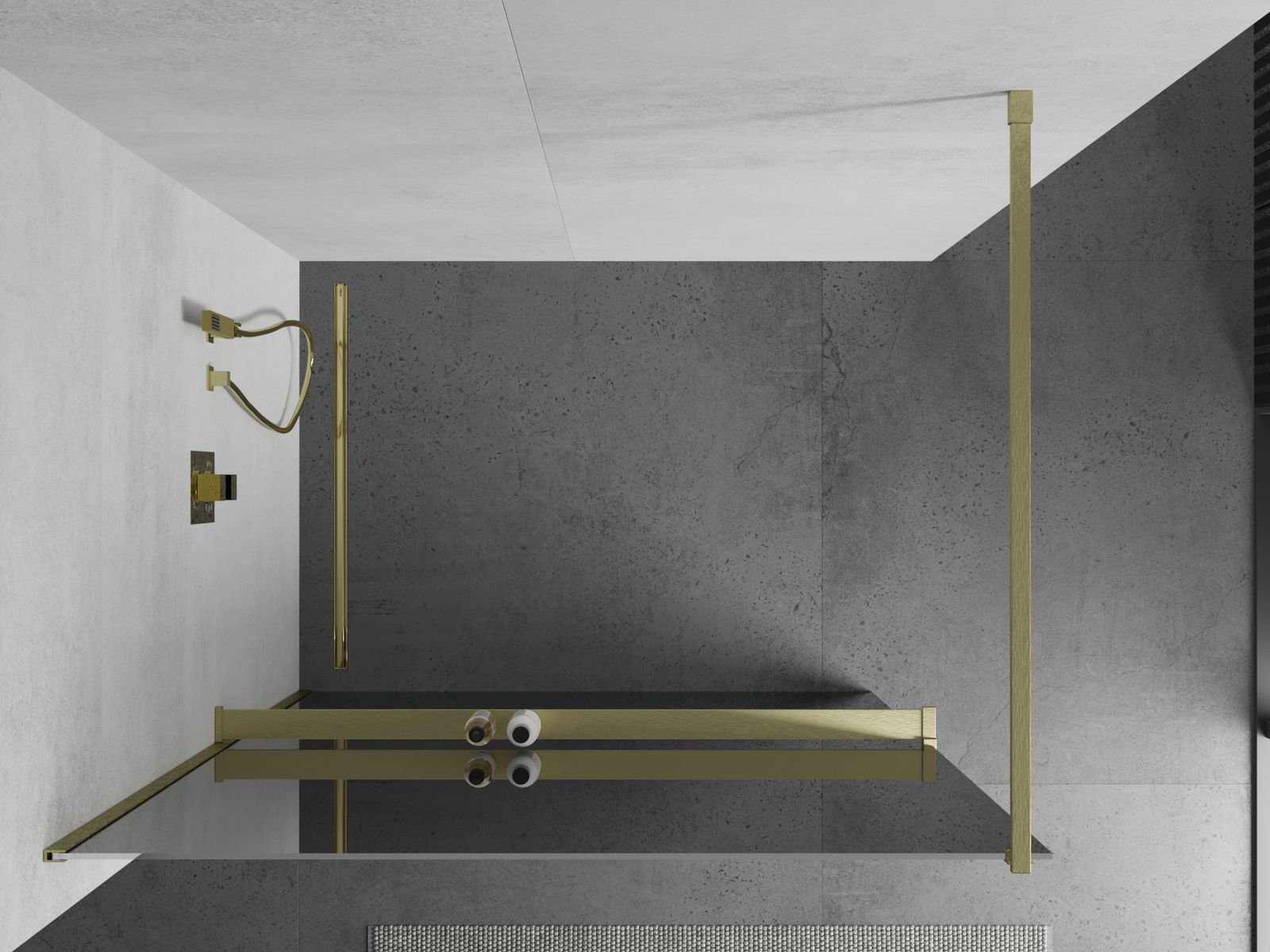 Mexen Kioto+ parete doccia con mensola Walk-in 100 x 200 cm, specchio, oro spazzolato - 800-100-121-55-50