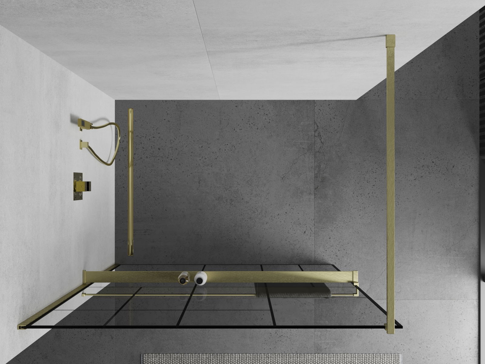 Mexen Kioto+ parete doccia con mensola Walk-in 140 x 200 cm, motivo nero, dorato spazzolato - 800-140-121-55-78