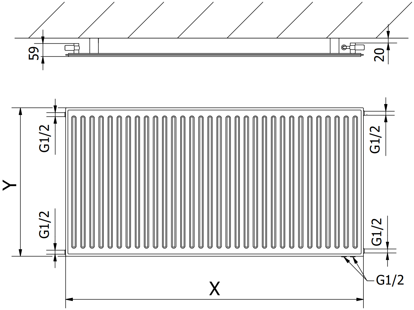 Le immagini mostrano il radiatore nella dimensione 600 x 1200 mm.