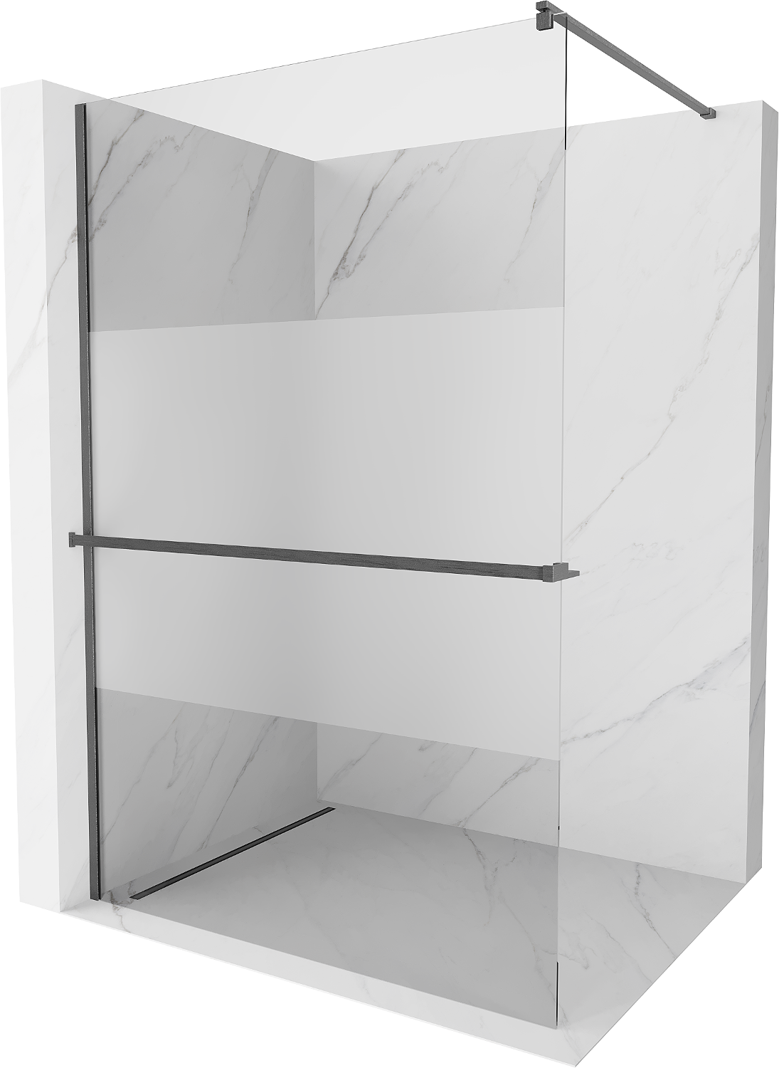 Mexen Kioto+ parete doccia con mensola Walk-in 130 x 200 cm, trasparente/smerigliato, grigio canna di fucile spazzolato